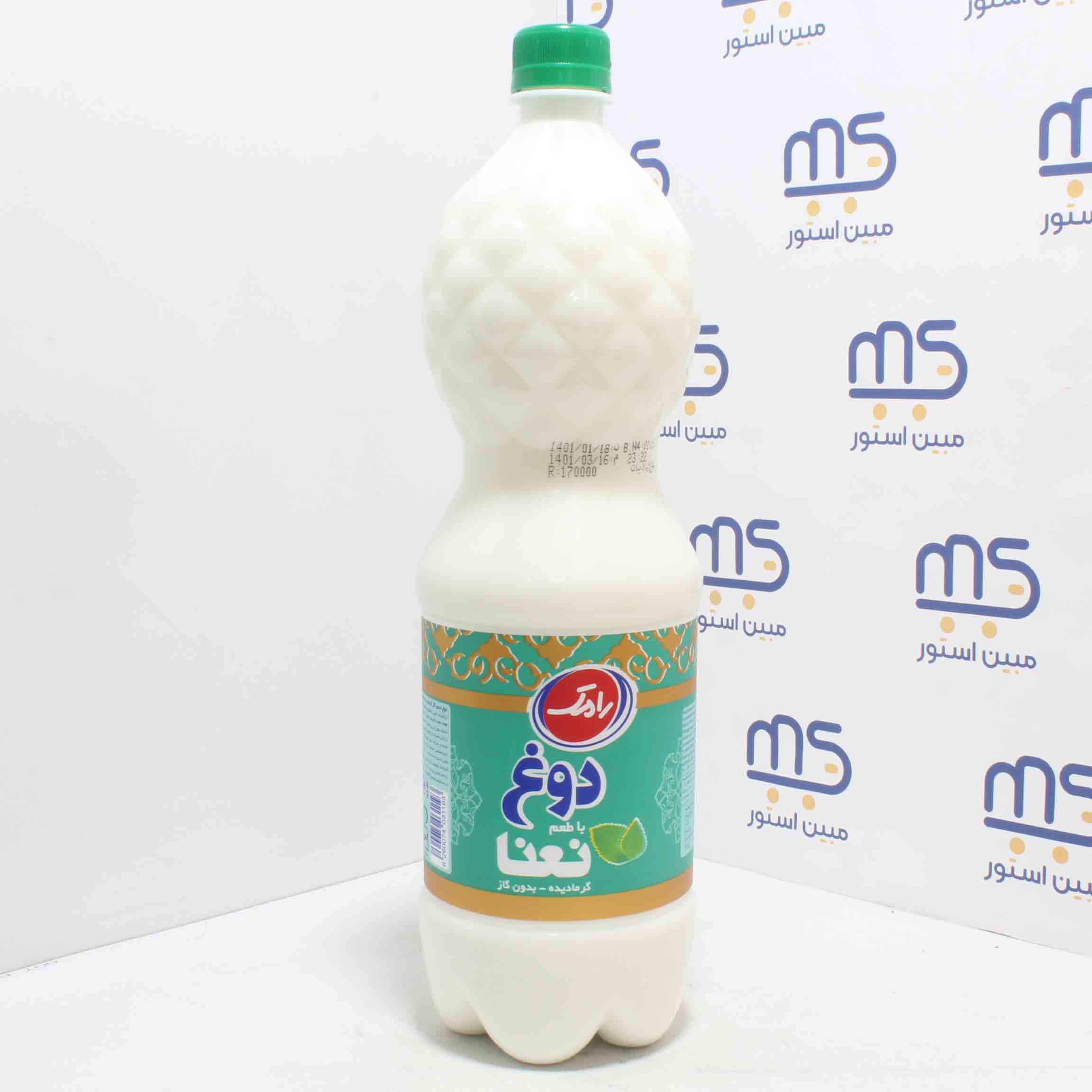 دوغ گرمادیده بدون گاز با طعم نعناع رامک 1500 سی سی