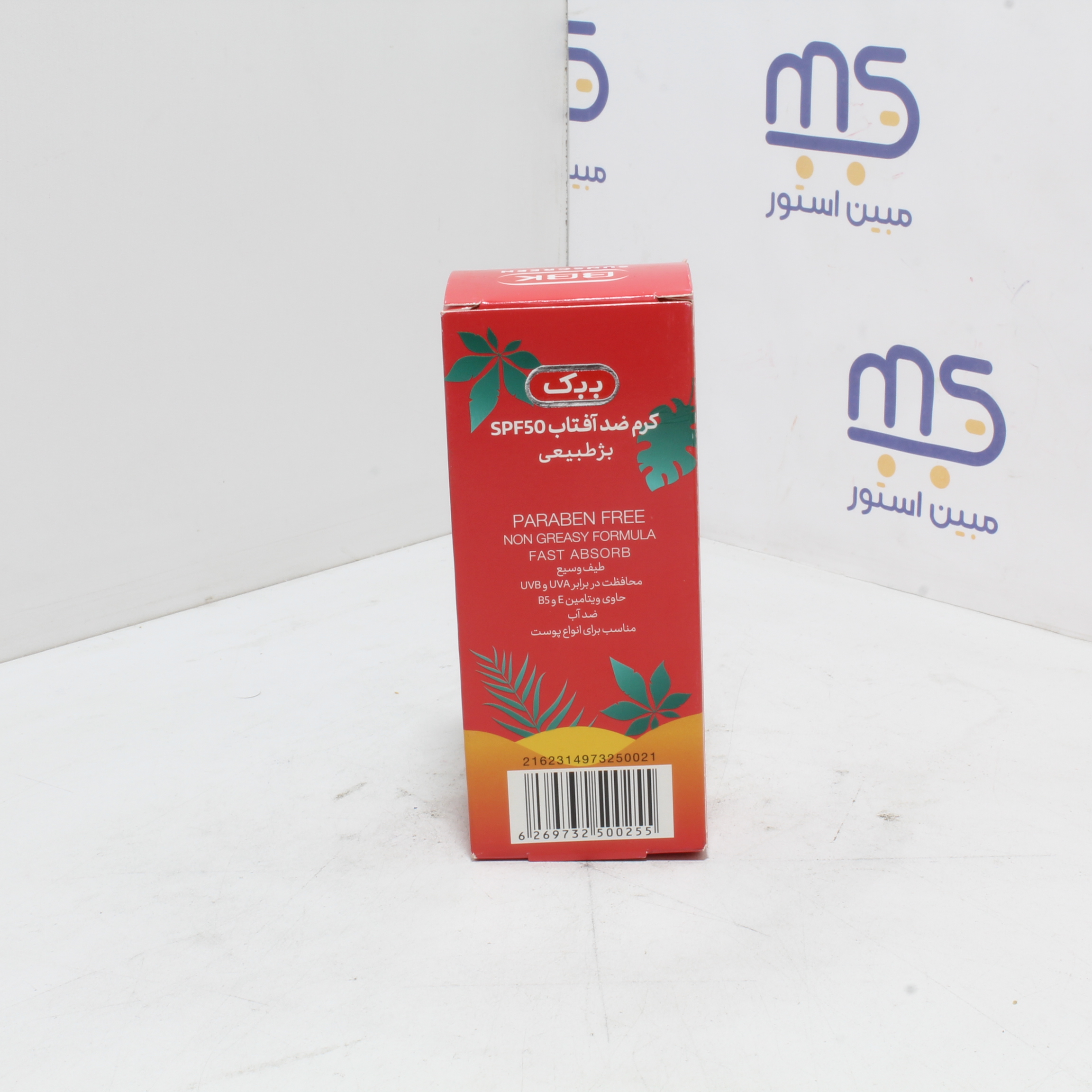 کرم ضدآفتاب SPF50 پژ طبیعی مناسب انواع پوست ببک 50 میلی لیتری