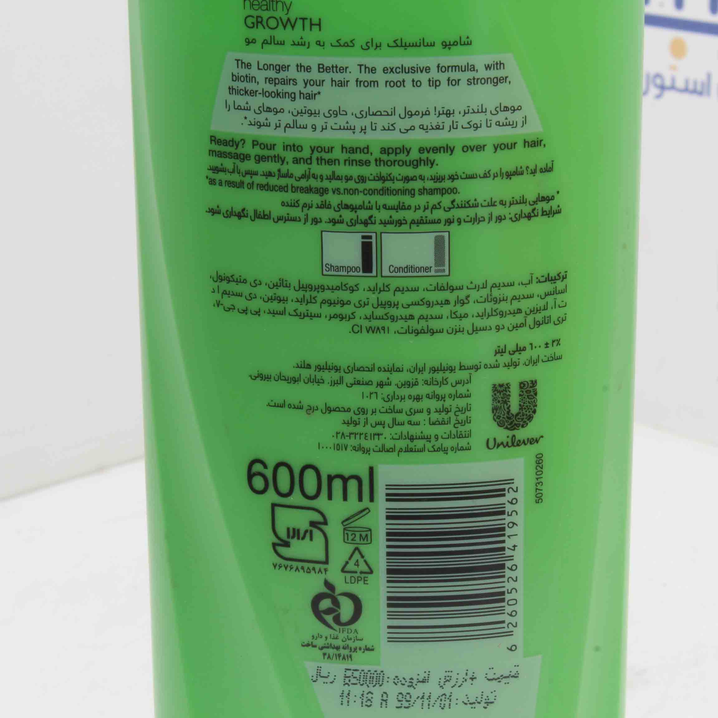 شامپو برای کمک به رشد سالم مو سانسیلک 600 میلی لیتر