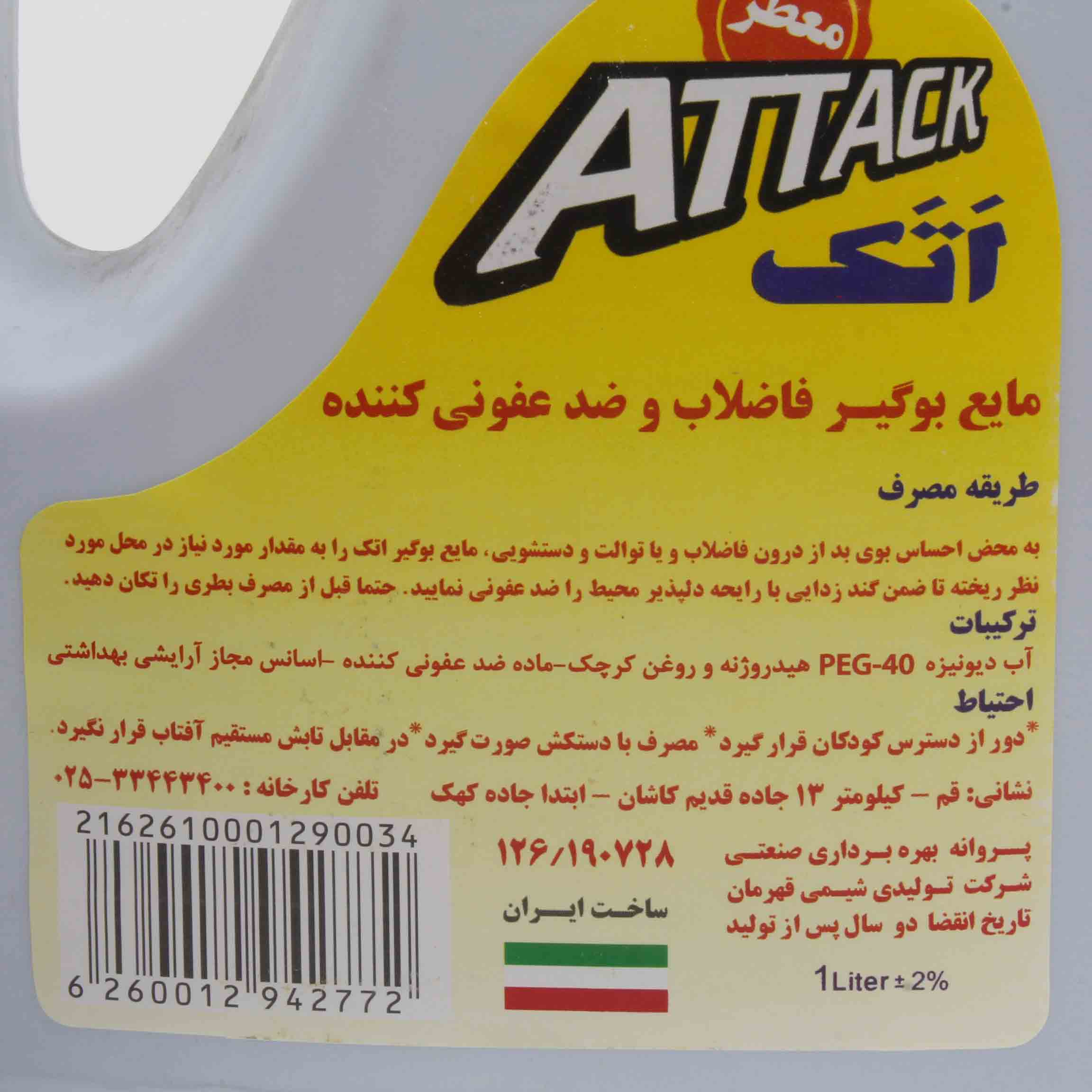 به محض احساس بوی بد از درون فاضلاب و یا توالت و دستشویی، مایع بوگیر اتک را به مقدار مورد نیاز در محلّ مورد نظر ریخته تا ضمن گندزدایی با رایحۀ دلپذیر محیط را ضدّ عفونی نمایید. حتماً قبل از مصرف، بطری را تکان دهید.