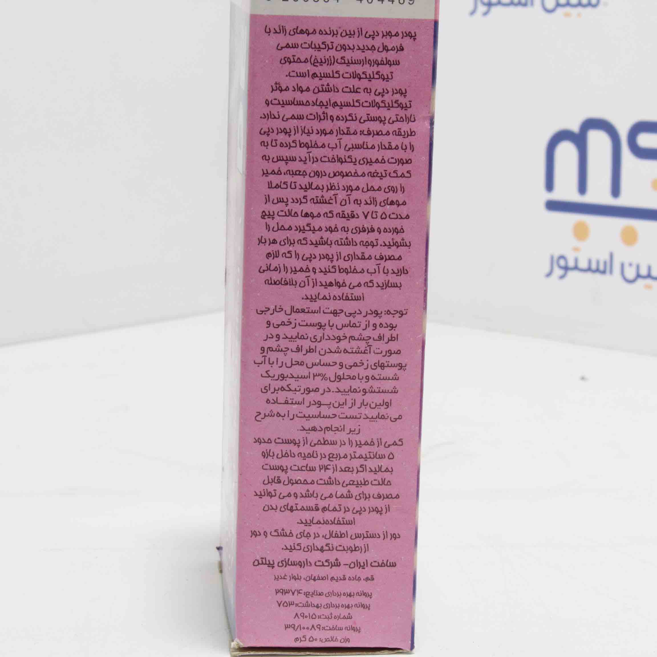 پودر موبردپی از بین برنده موهای زائد با فرمول جدید بدون ترکیبات سمی سولفوروارسنیک(زرنیخ) محتوی تیوگلیکولات کلسیم است.پودر دپی به علت داشتن مواد موثر تیوگلیکولات کلسیم ایجاد حساسیت و ناراحتی پوستی نکرده و اثرات سمی ندارد.