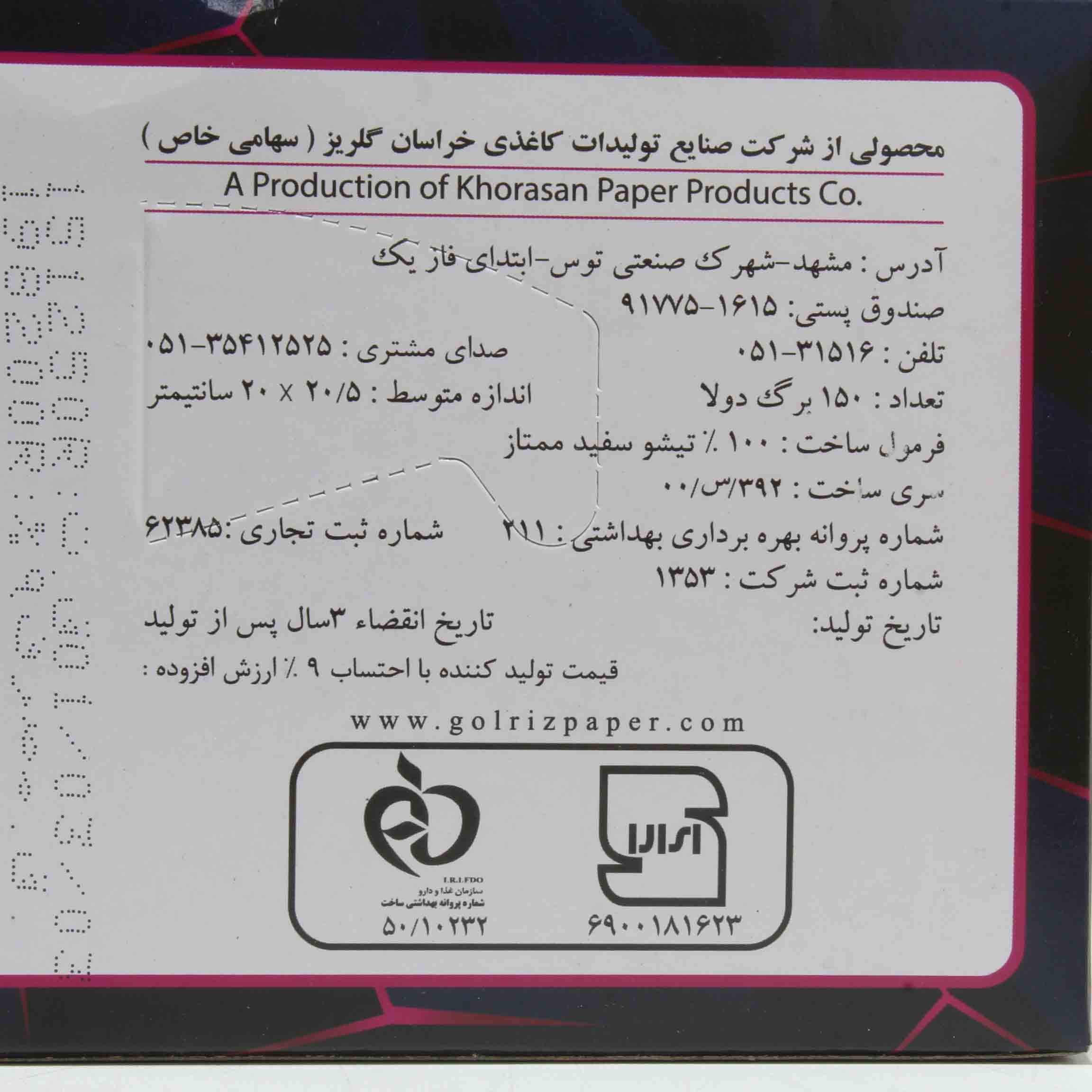 قیمت خرید و مشخصات دستمال کاغذی جعبه ای طرح دار گلریز |دستمال کاغذی جعبه ای طرح دار گلریز 150 برگ 2 لایه