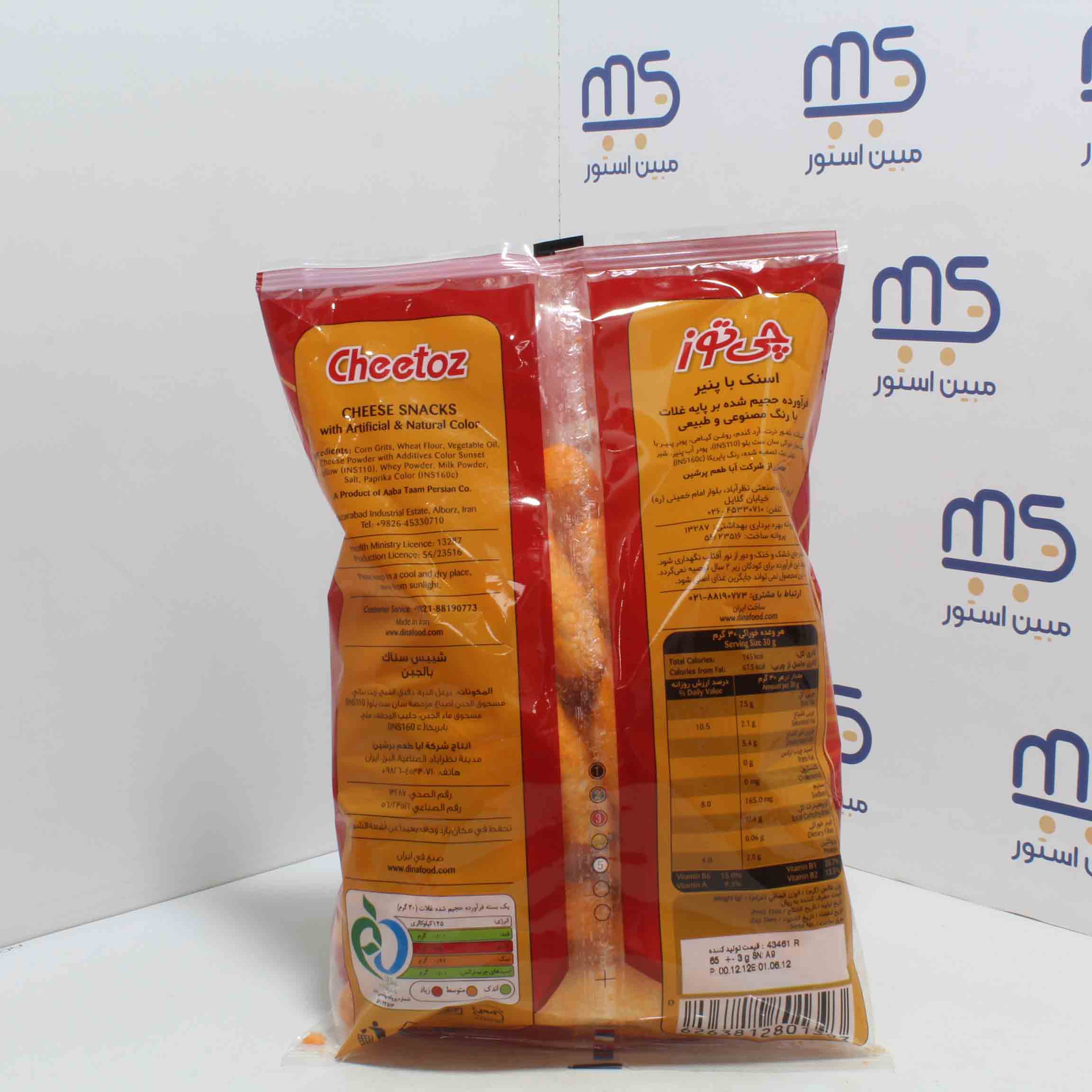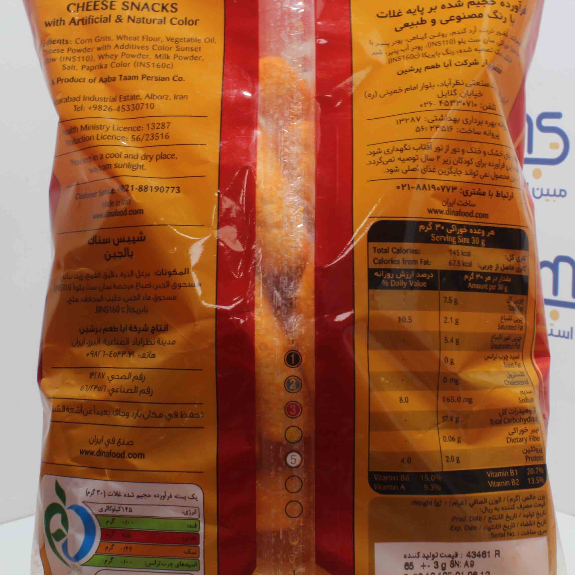 اسنک با پنیر فرآوردۀ حجیم شده بر پایۀ غلّات با رنگ مصنوعی و طبیعی
