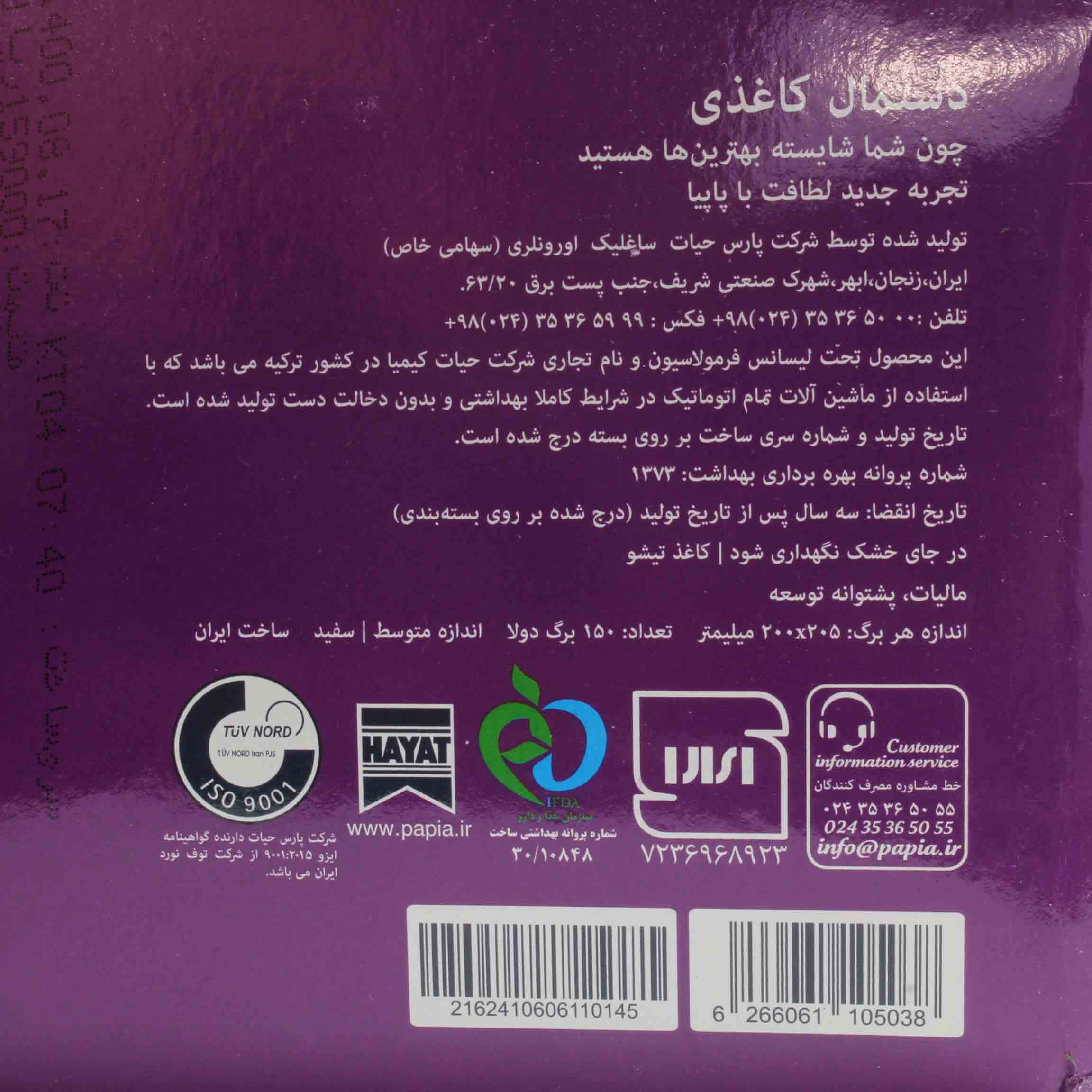 قیمت خرید و مشخصات دستمال کاغذی جعبه ای طرح دار پاپیا |دستمال کاغذی جعبه ای طرح دار پاپیا 150 برگ 2 لایه