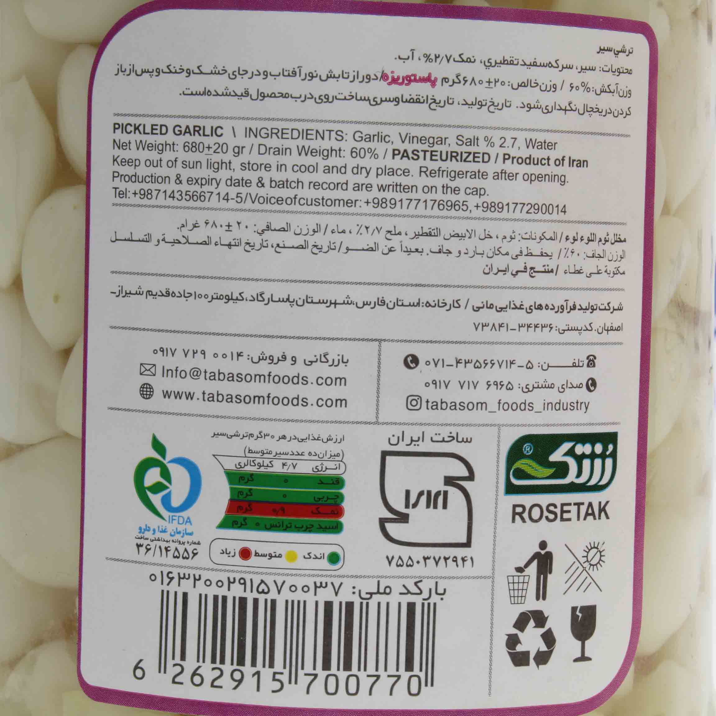 سیر ـ سرکه سفید تقطیری ـ نمک 7/2% ـ آب.