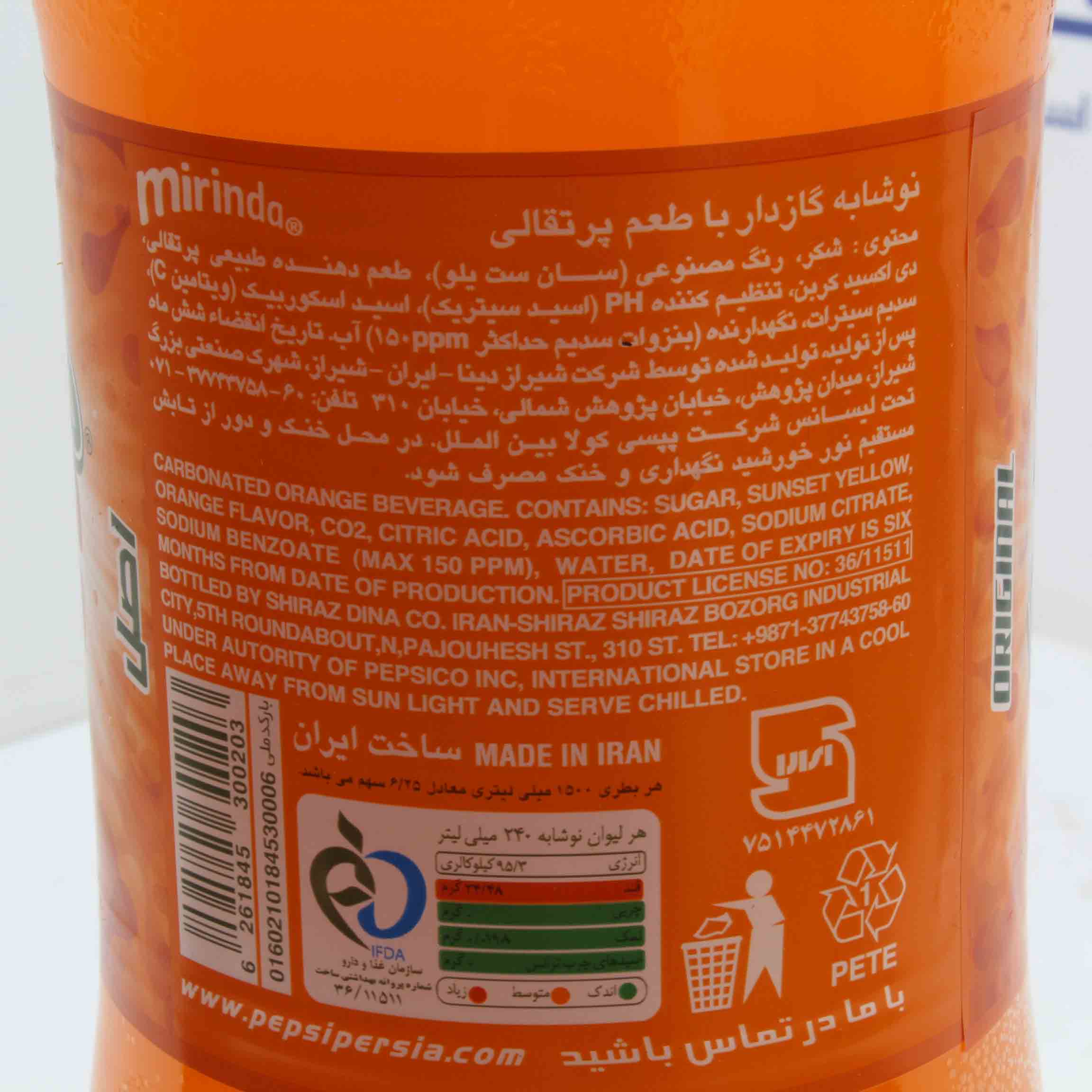 آب گازدار ـ شکر ـ اسید سیتریک ـ صمغ عربی ـ طعم دهندۀ طبیعی پرتقالی ـ بنزوات سدیم (حدّاکثر 100 پی پی ام) ـ رنگ (سان ست یلو) ـ سیترات سدیم ـ اسید آسکوربیک