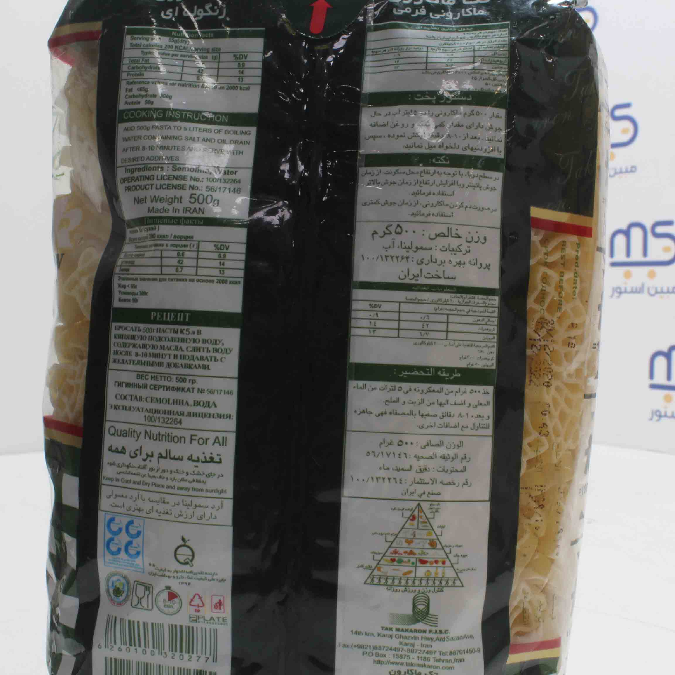 قیمت خرید و مشخصات ماکارونی فرمی زنگوله ای تک ماکارون|ماکارونی فرمی زنگوله ای تک ماکارون 500 گرمی