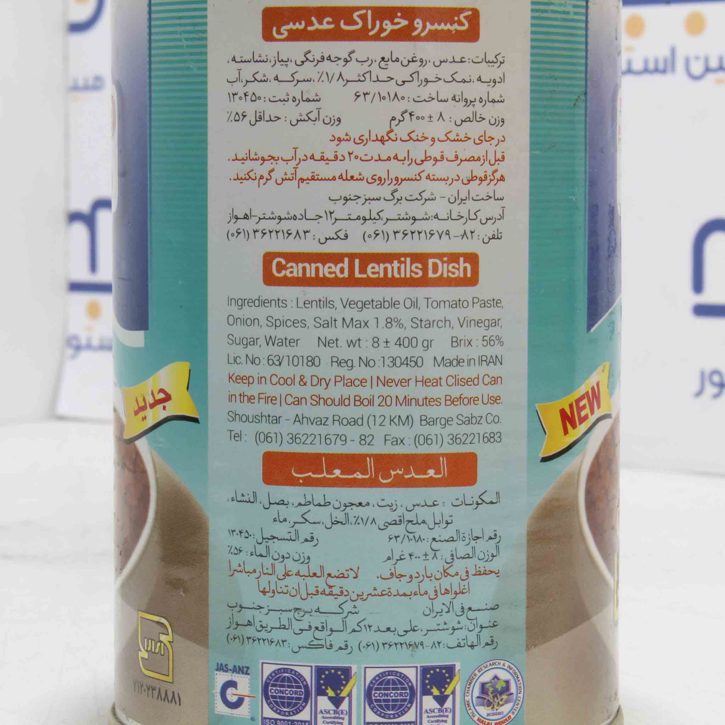 عدس ـ روغن مایع ـ رب گوجه فرنگی ـ پیاز ـ نشاسته ـ ادویه ـ نمک خوراکی حدّاکثر 1.8% ـ سرکه ـ شکر ـ آب