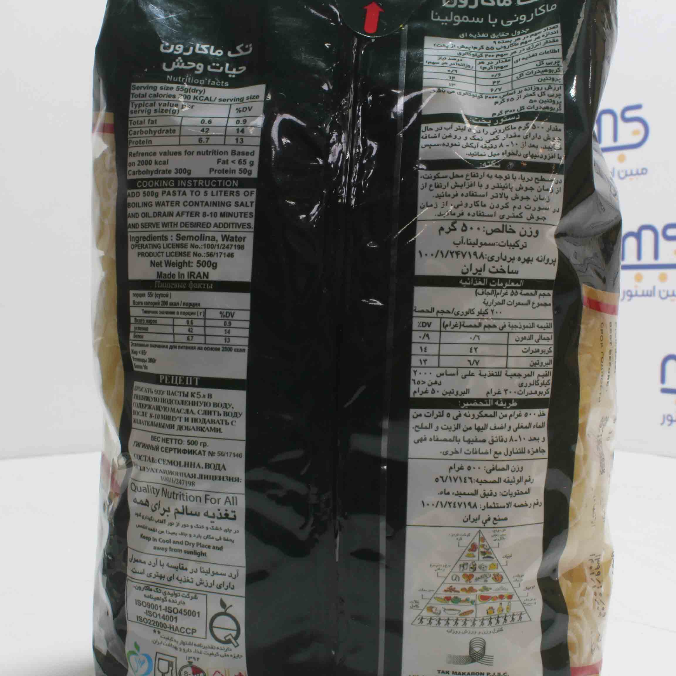 قیمت ماکارونی فرمی حیات وحش تک ماکارون 500 گرمی