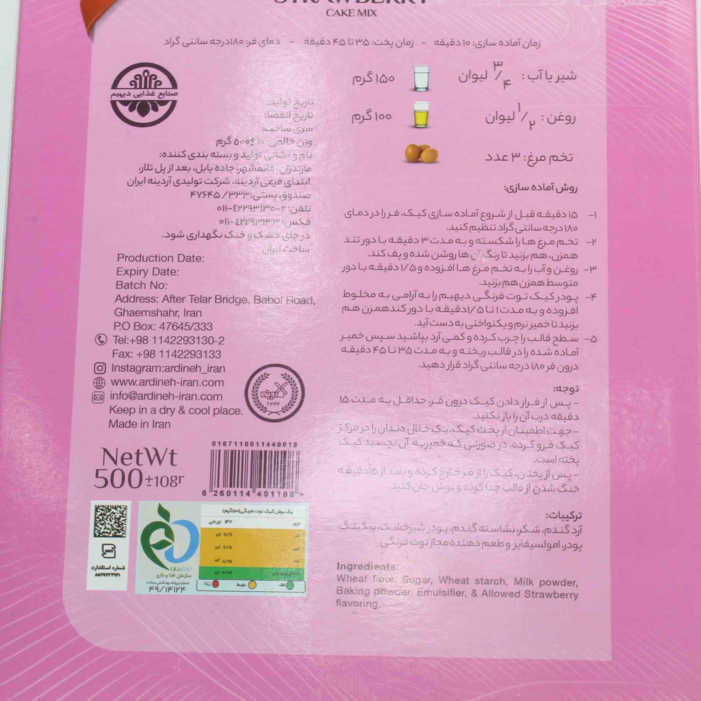 آرد گندم ، شکر ، نشاسته گندم ،پودر شیر خشک ، بیکینگ پودر ، امولسیفایر ، طعم دهنده مجاز توت فرنگی.