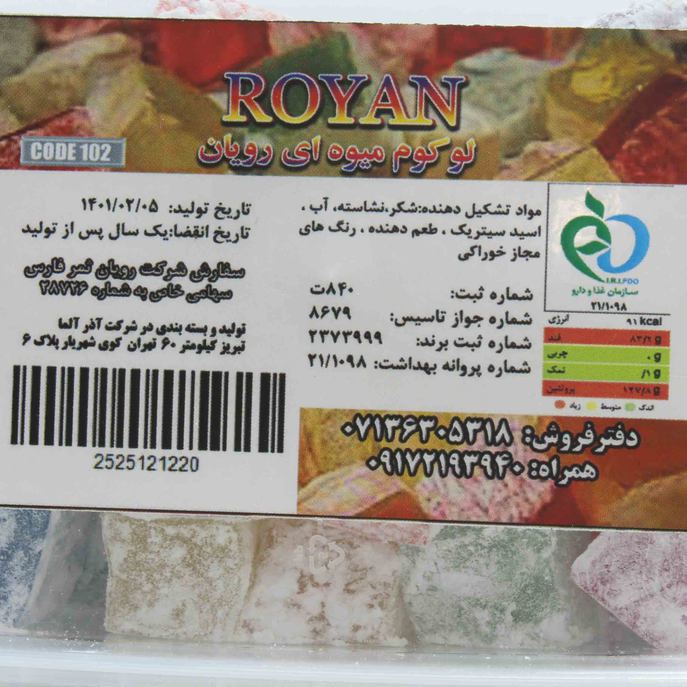 قیمت خرید و مشخصات لوکوم میوه ای رویان|لوکوم میوه ای رویان 400 گرمی