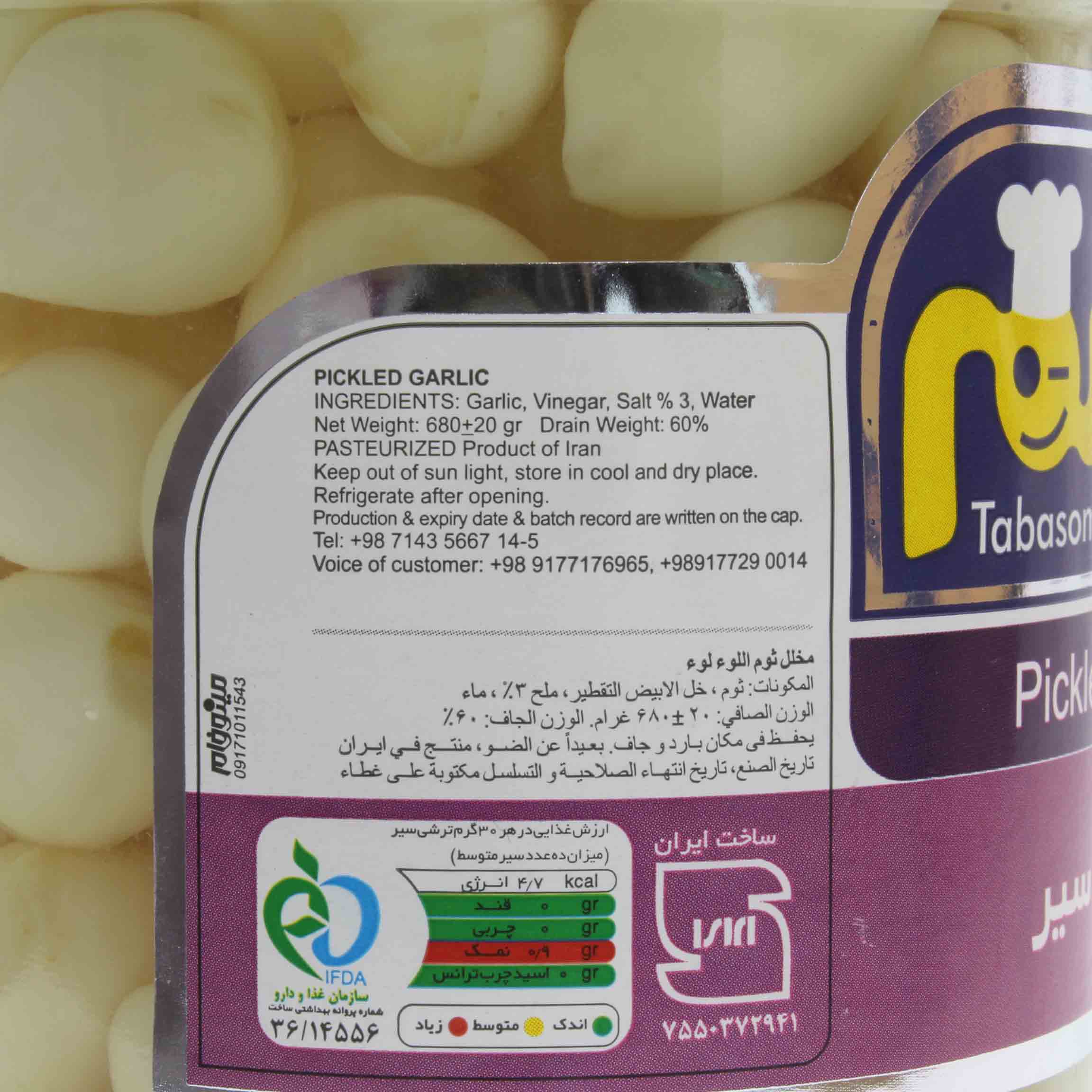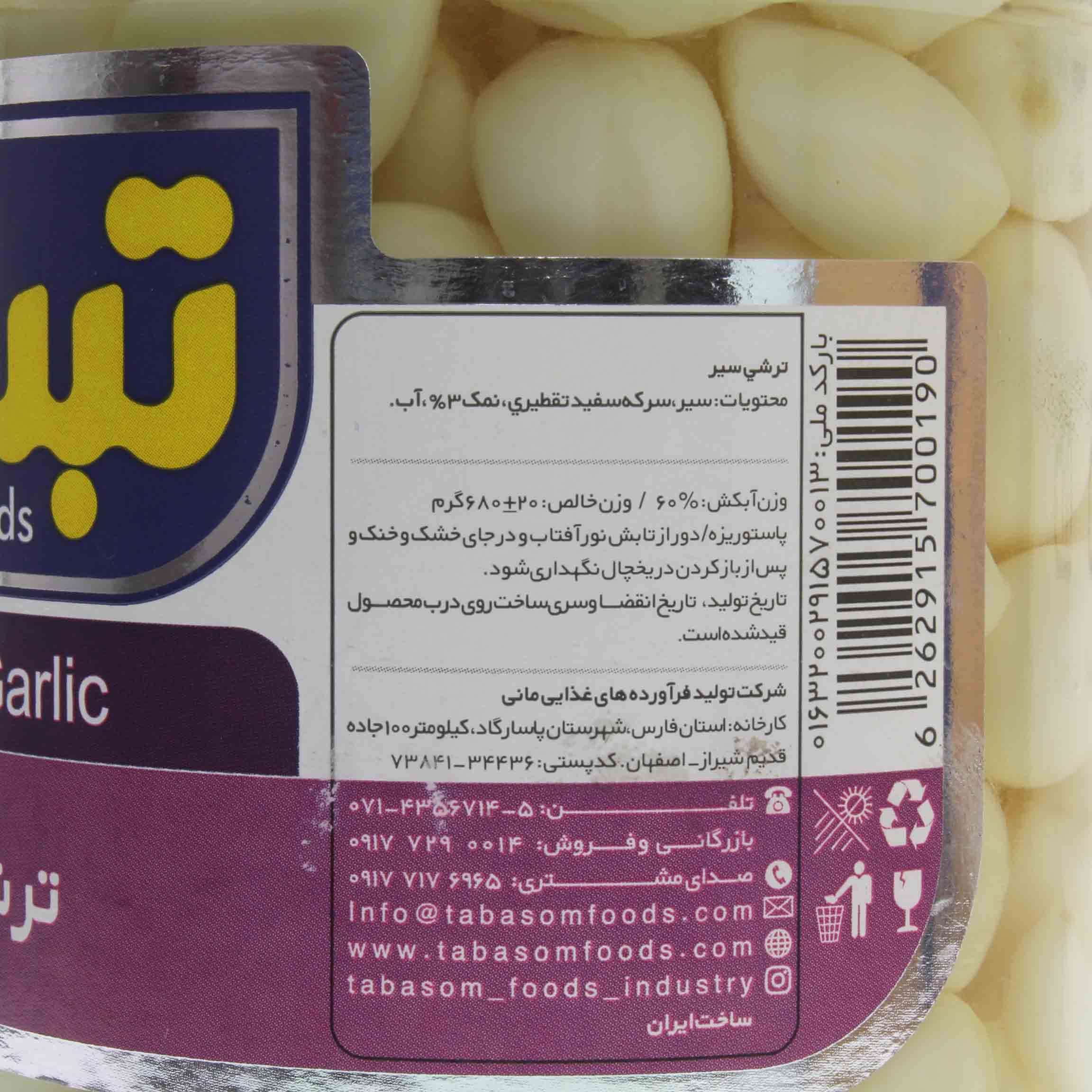 سیر ـ سرکۀ سفید تقطیری ـ نمک 3% ـ آب
