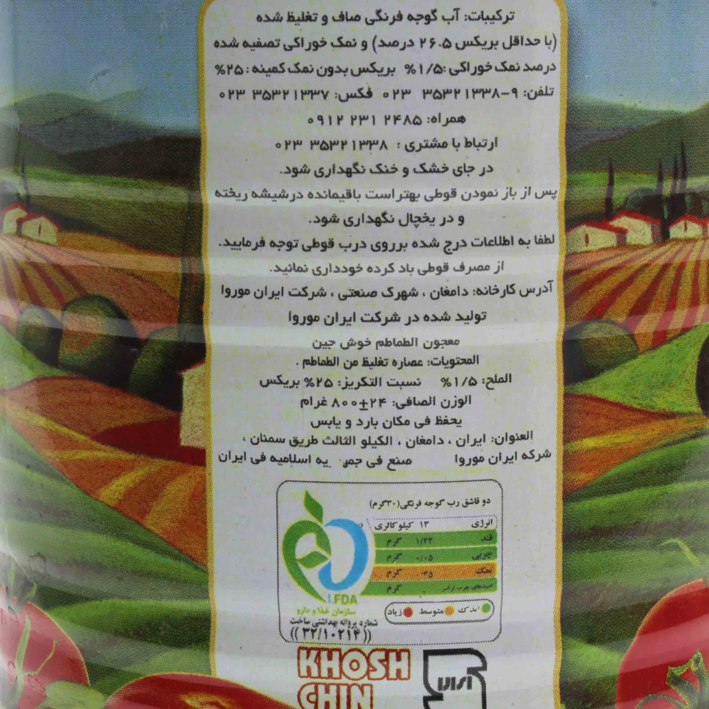 آب گوجه فرنگی صاف و تغلیظ شده (با حداقل بریکس 26.5 درصد) و نمک خوراکی تصفیه شده 1.5%