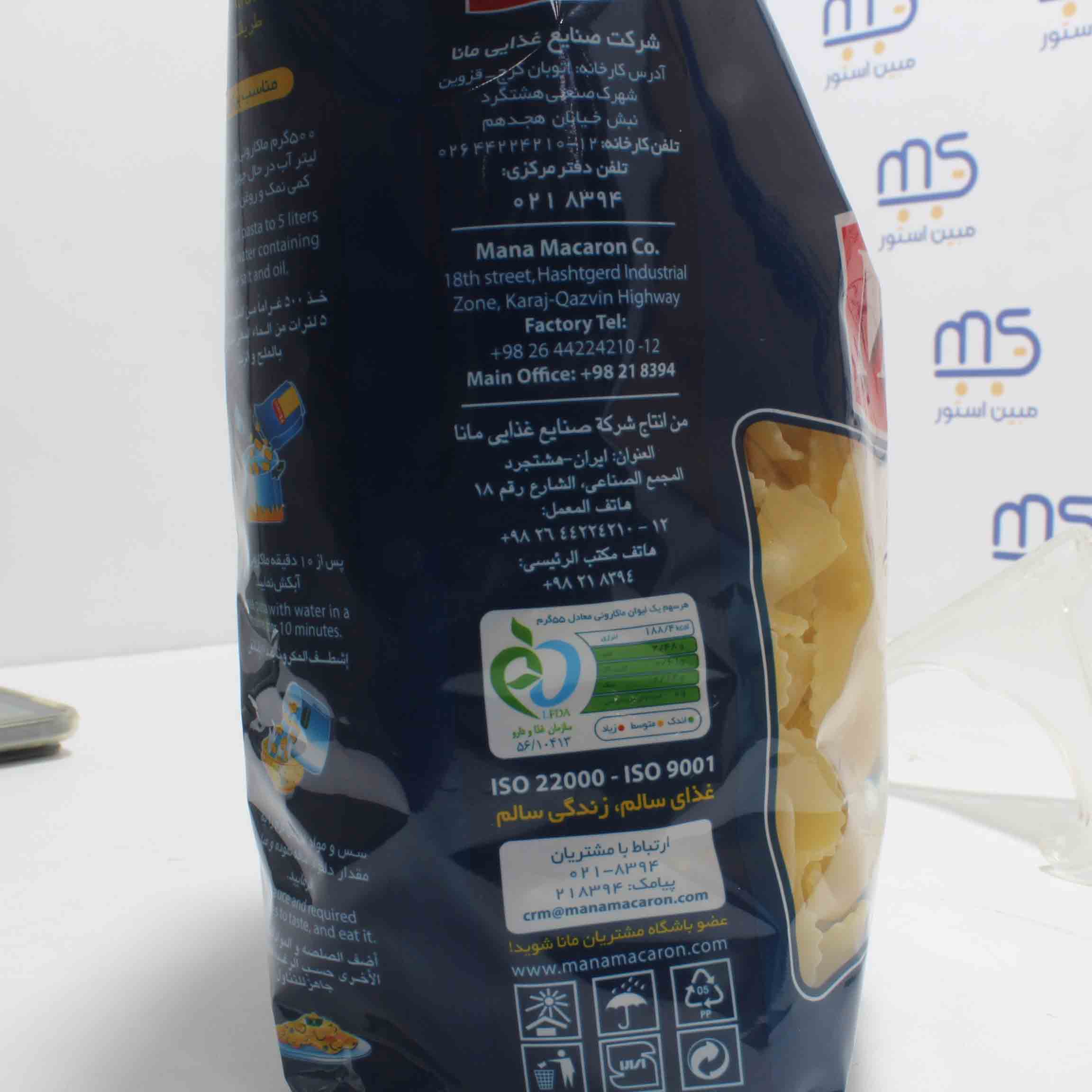 قیمت خرید و مشخصات ماکارونی فرمی پاپیون مانا |ماکارونی فرمی پاپیون مانا 500 گرمی