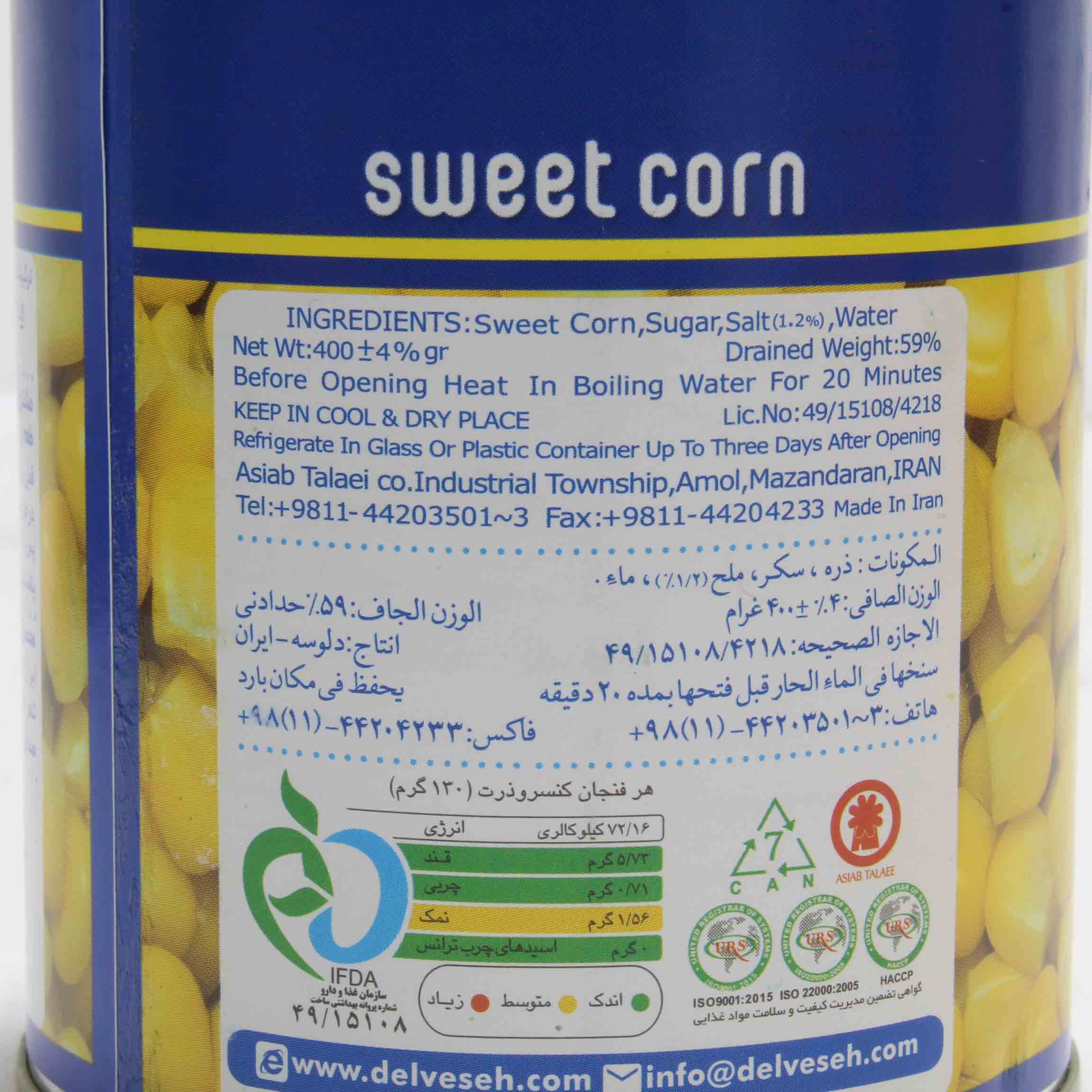 قیمت خرید و مشخصات کنسرو ذرت شیرین دلوسه |کنسرو ذرت شیرین دلوسه 400 گرمی