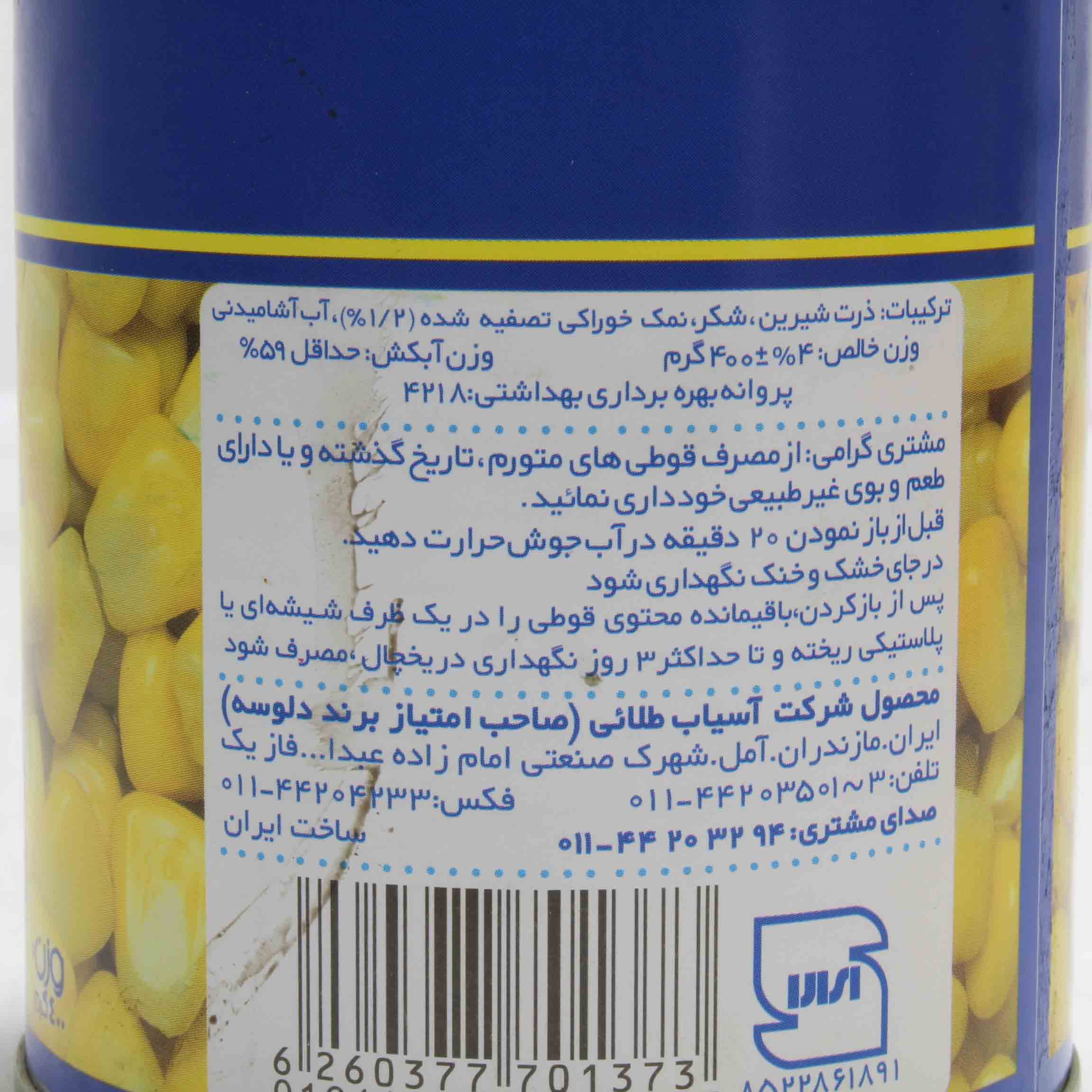 کنسرو ذرت شیرین دلوسه 400 گرمی