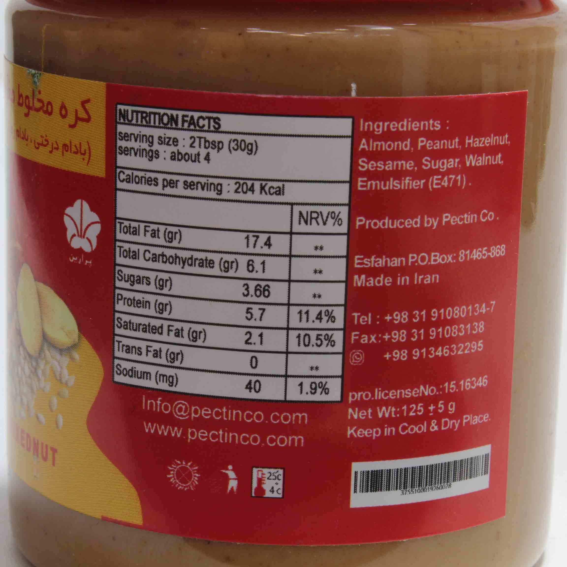 بادام زمینی ، بادام درختی ، کنجد ، گردو ، شکر ، امولسیفایر (E471)