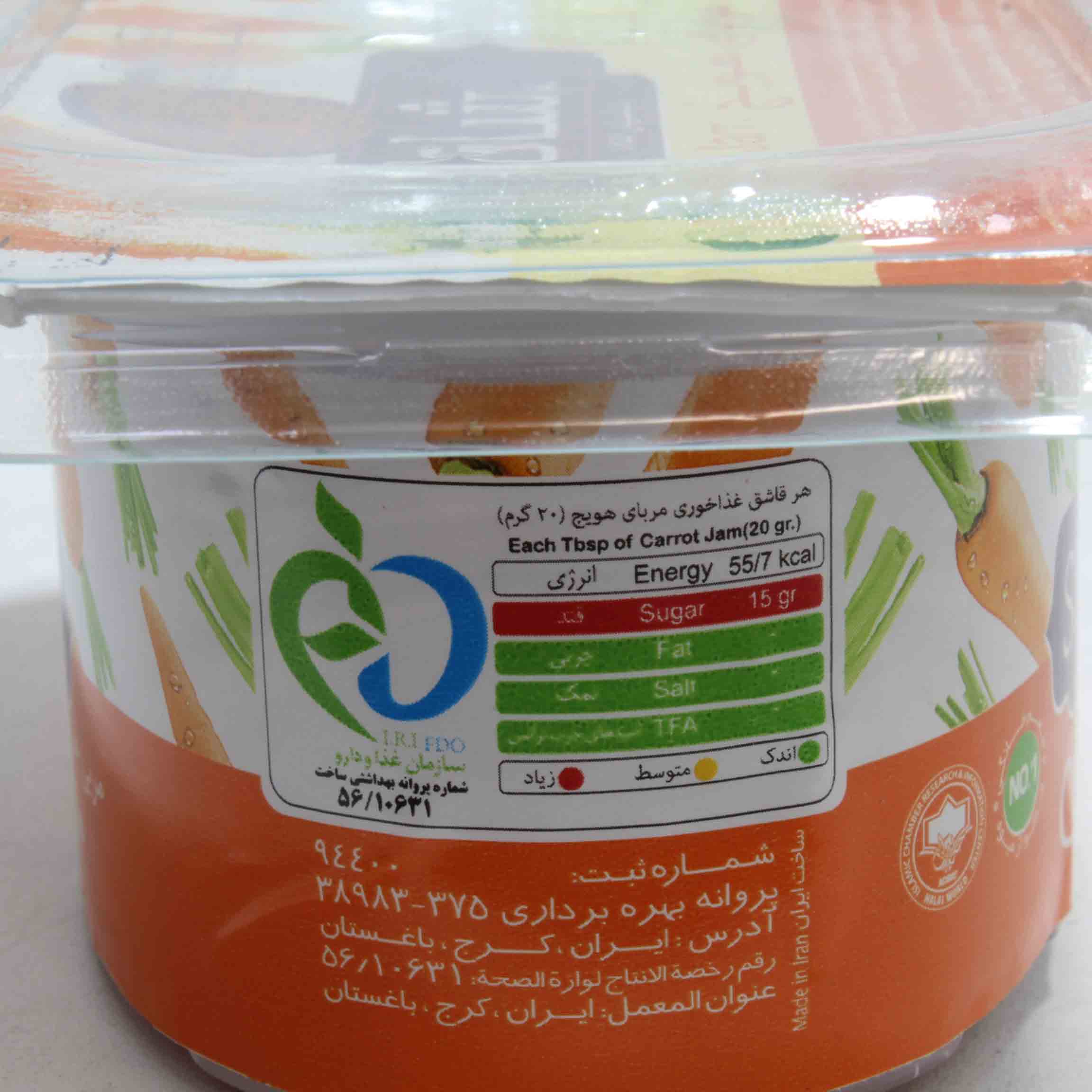 هویج ، شکر ، گلوکز ، فروکتوز ، آب ، اسیدسیتریک ، وانیل.