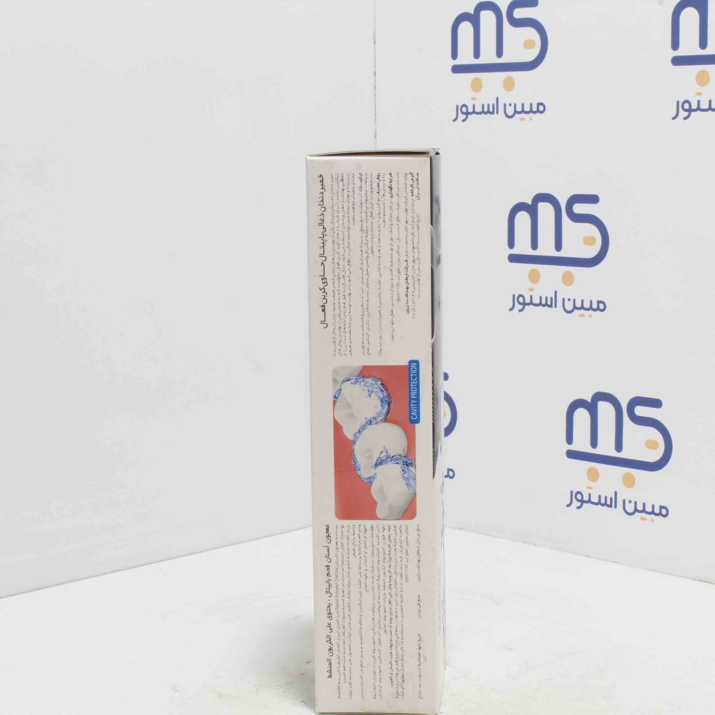 آب دیونیزه ـ سوربیتول ـ سیلیکای هیدراته ـ گلیسپرین ـ پلی اتیلن گلیکول 8 ـ سدیم تری پلی فسفات ـ سدیم لوریل سولفات ـ اسانس مجاز خوراکی ـ سدیم مونو فلورو فسفات ـ سدیم کربوکسی متیل سلولز ـ زینک استات ـ تریکلوزان ـ سدیم ساخارین ـ سدیم بنزوات ـ اسانس نعنا-کربن فعال-منتول
