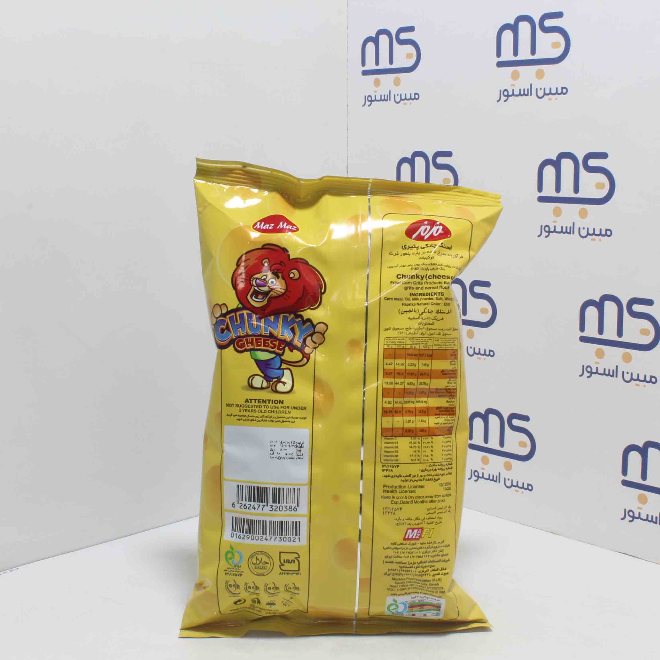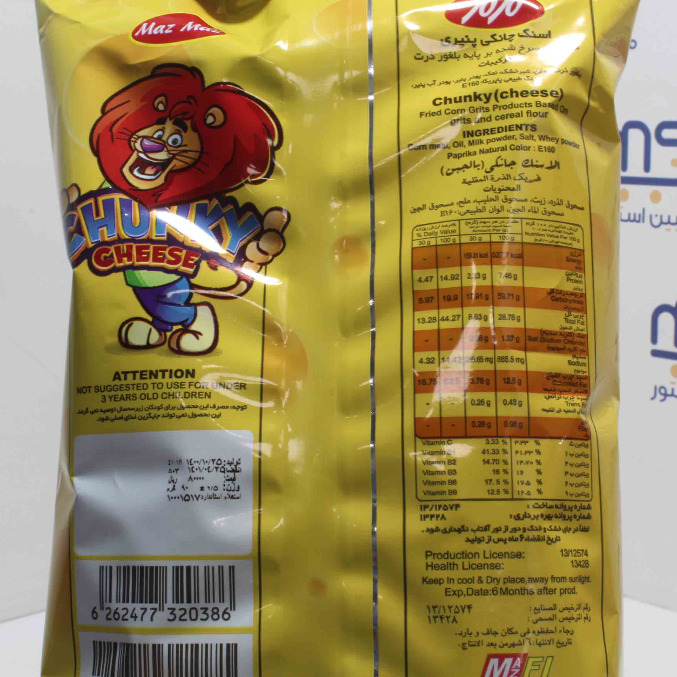 بلغور ذرت ، روغن ، شیر خشک ، نمک ، پودر آب پنیر، پودر پنیر ، رنگ طبیعی پاپریکا : E160