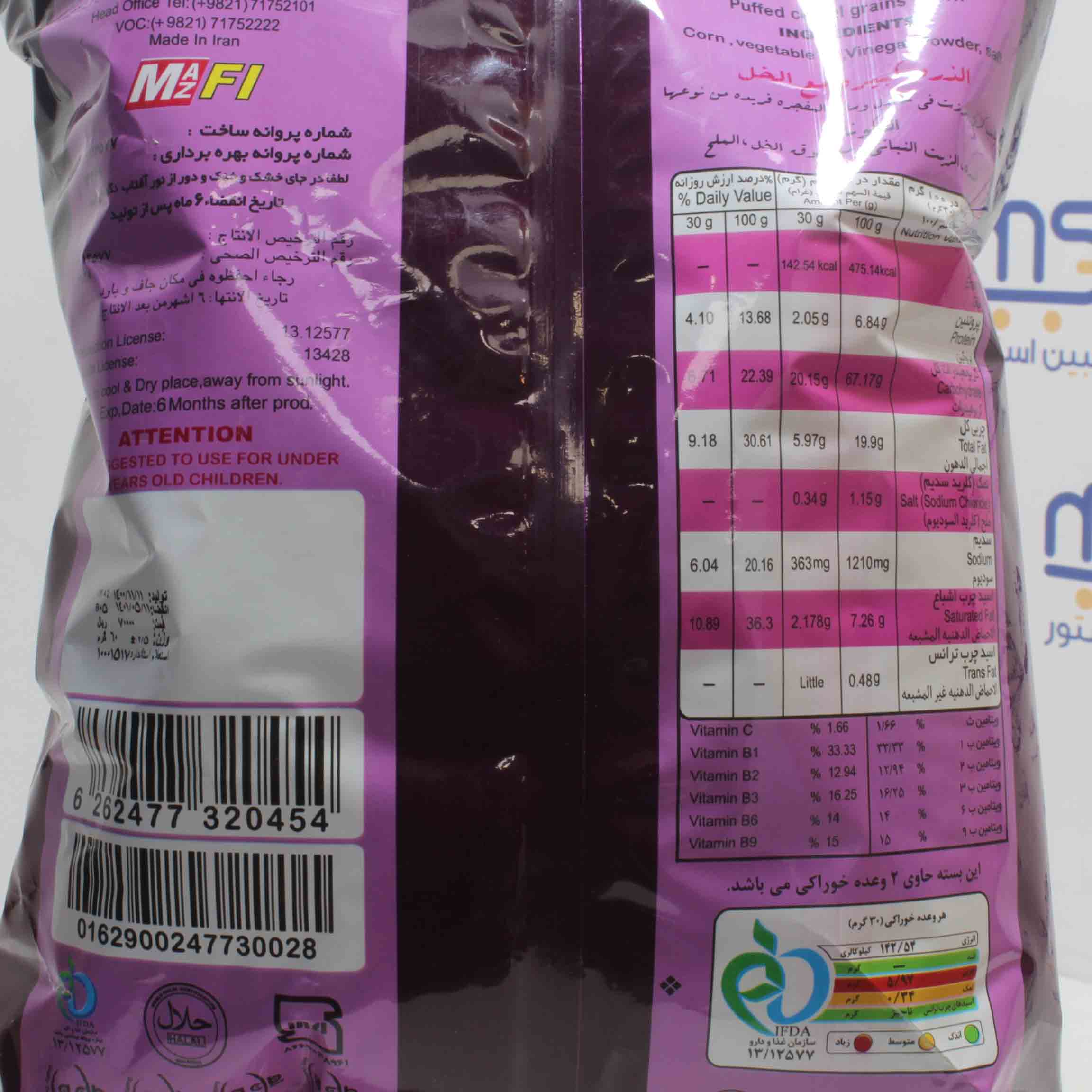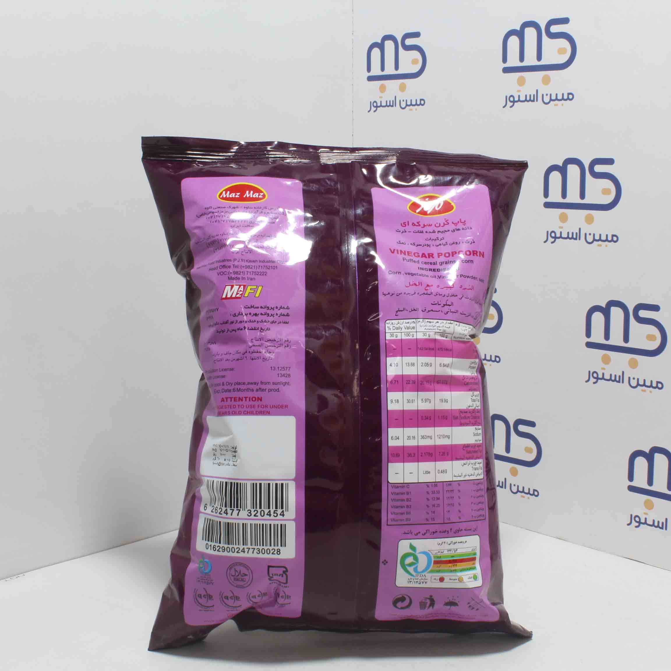 ذرت ، روغن گیاهی ، پودر سرکه ، نمک