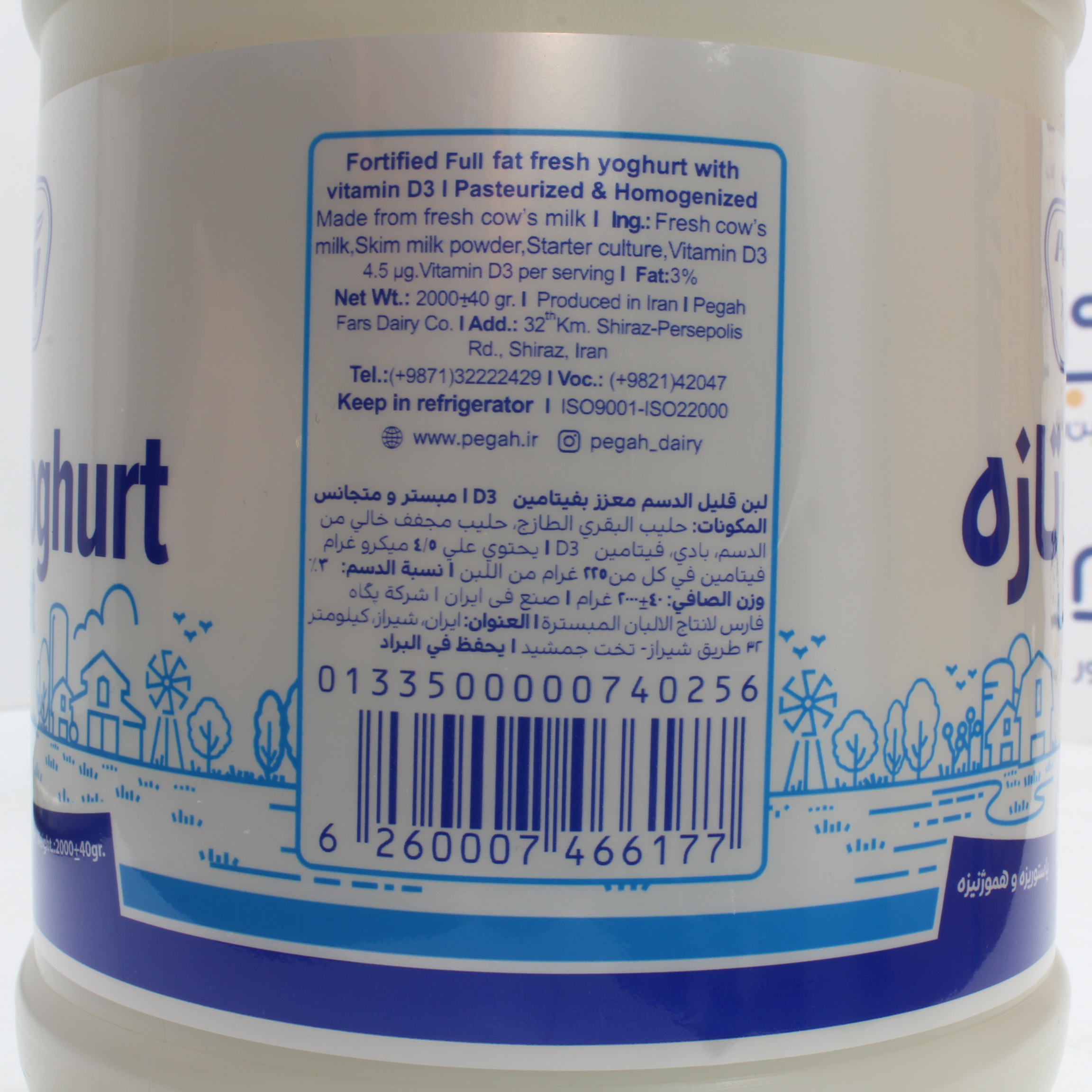 خرید ماست تازه پرچرپ غنی شده با ویتامین D3 پگاه 2000 گرمی