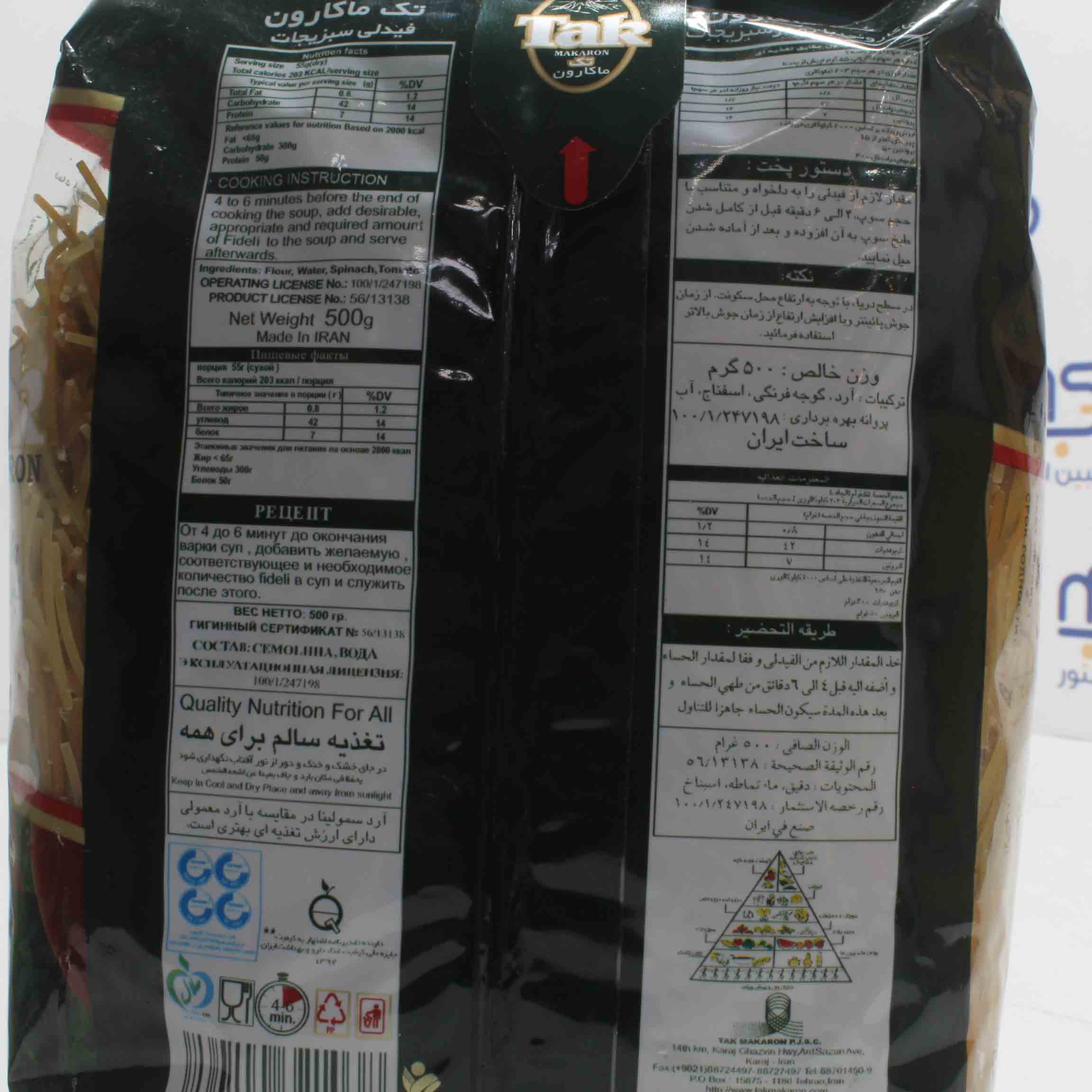 قیمت خرید و مشخصات ماکارونی فرمی فیدلی سبزیجات تک ماکارون|ماکارونی فرمی فیدلی سبزیجات تک ماکارون 500 گرمی