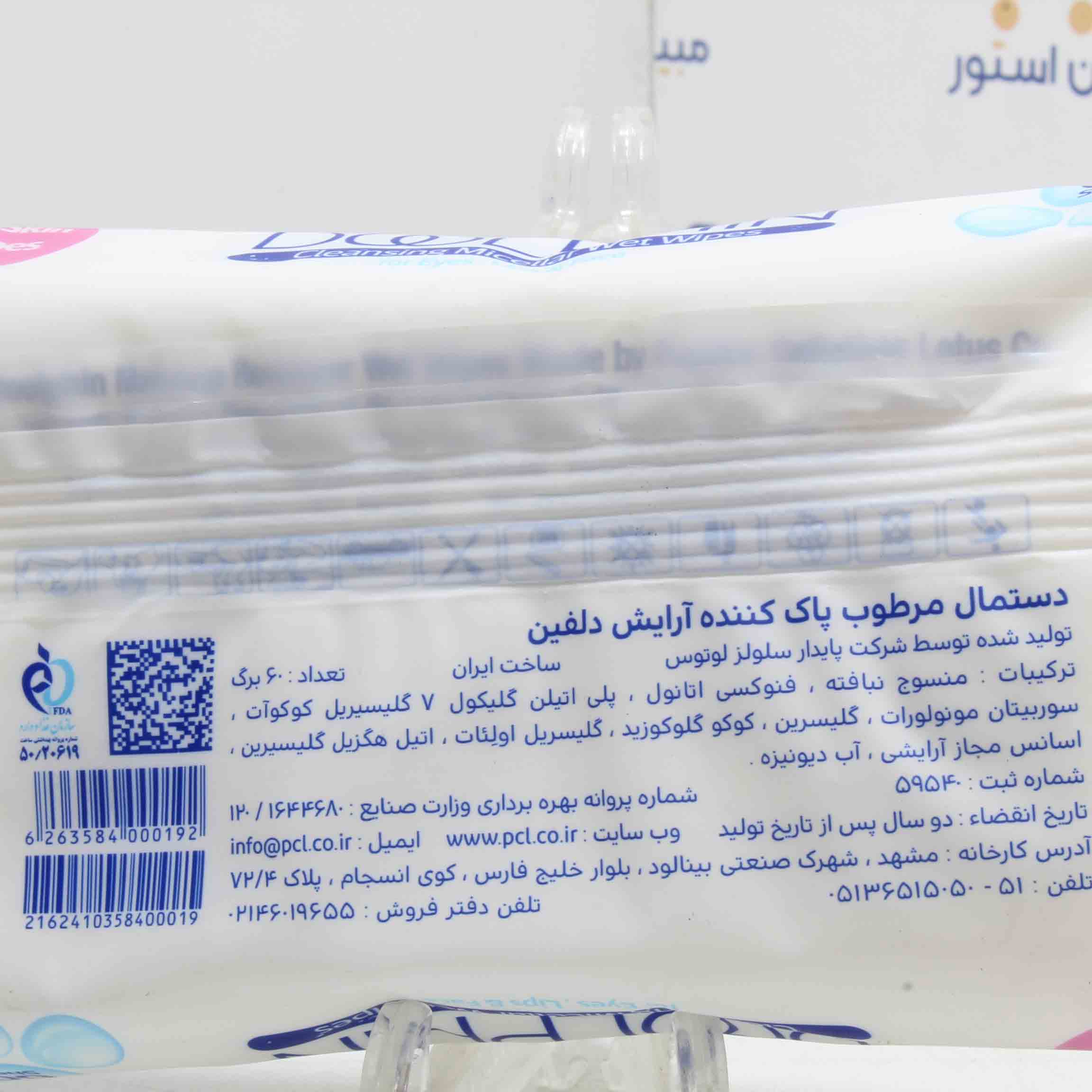 قیمت خرید و مشخصات دستمال مرطوب پاک کننده آرایش دلفین |دستمال مرطوب پاک کننده آرایش دلفین 60 عددی