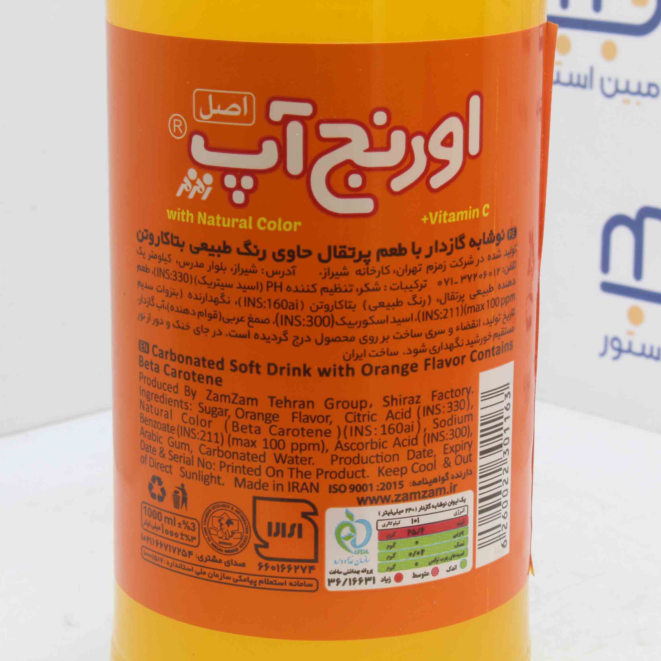 نوشابه گازدار با طعم پرتقال اورنج آپ زم زم 1000 میلی لیتری
