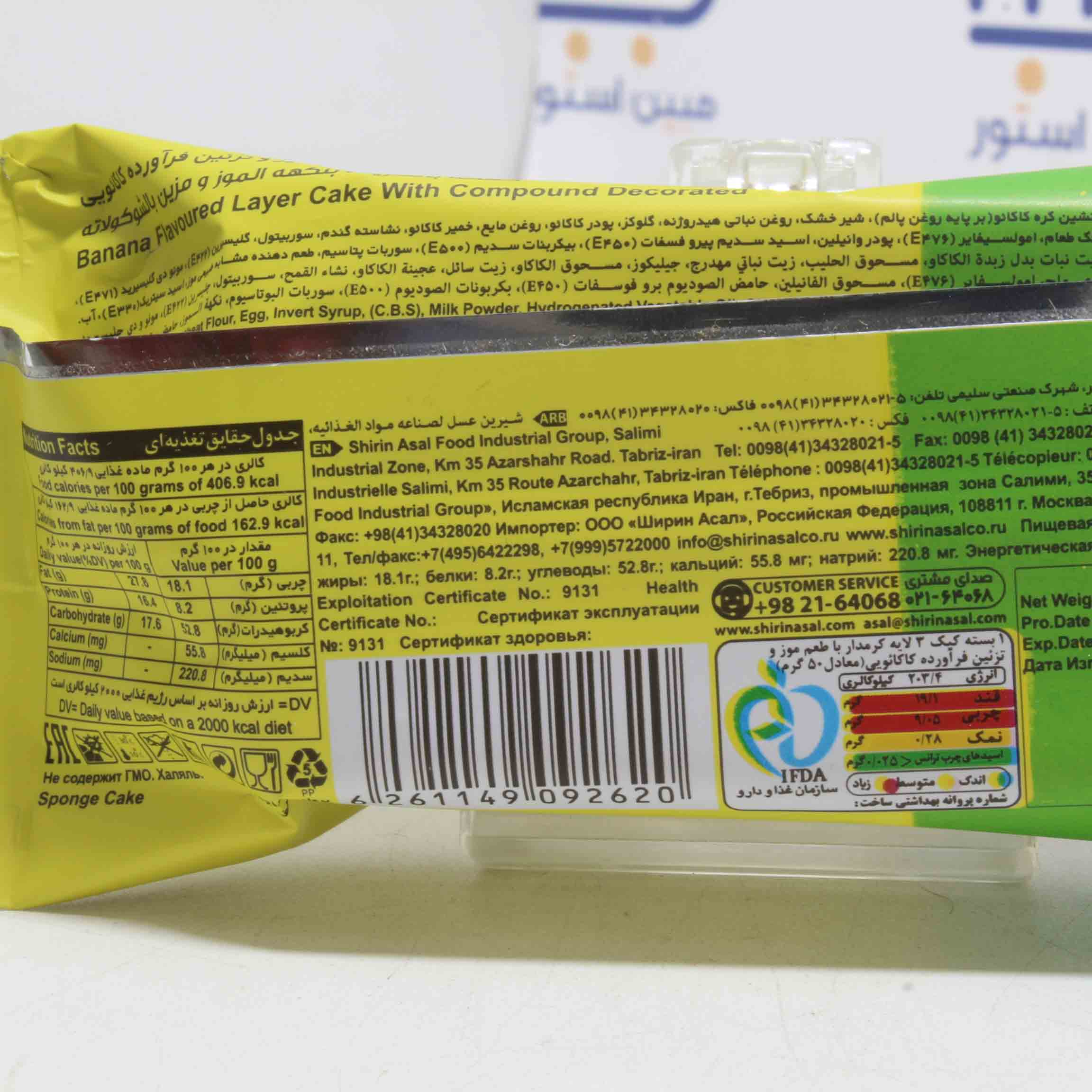 قیمت کیک سه لایه کرمدار با طعم موز و روکش کاکائویی سی سی شیرین عسل 40 گرمی
