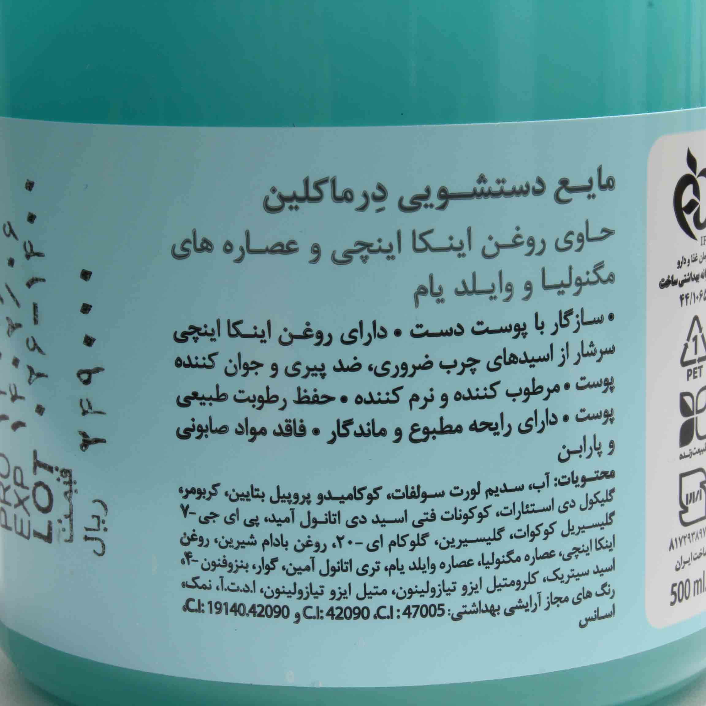مایع دستشویی حاوی روغن اینکا اینچی و عصاره مگنولیا و وایلدیام درماکلین 500 میلی لیتری
