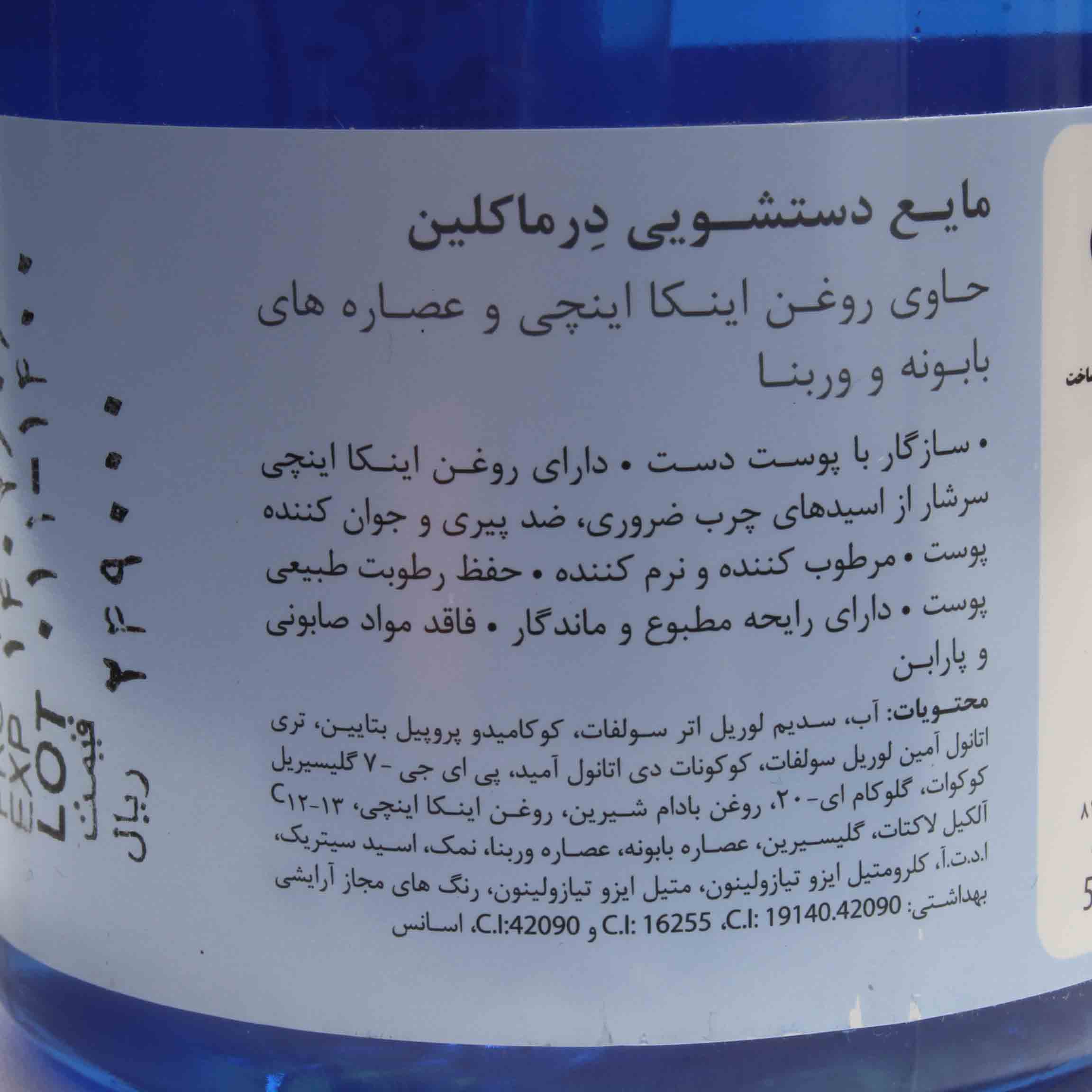 قیمت خرید و مشخصات مایع دستشویی حاوی روغن اینکا اینچی و عصاره های بابونه و وربنا درماکلین|مایع دستشویی حاوی روغن اینکا اینچی و عصاره های بابونه و وربنا درماکلین 500 میلی لیتری