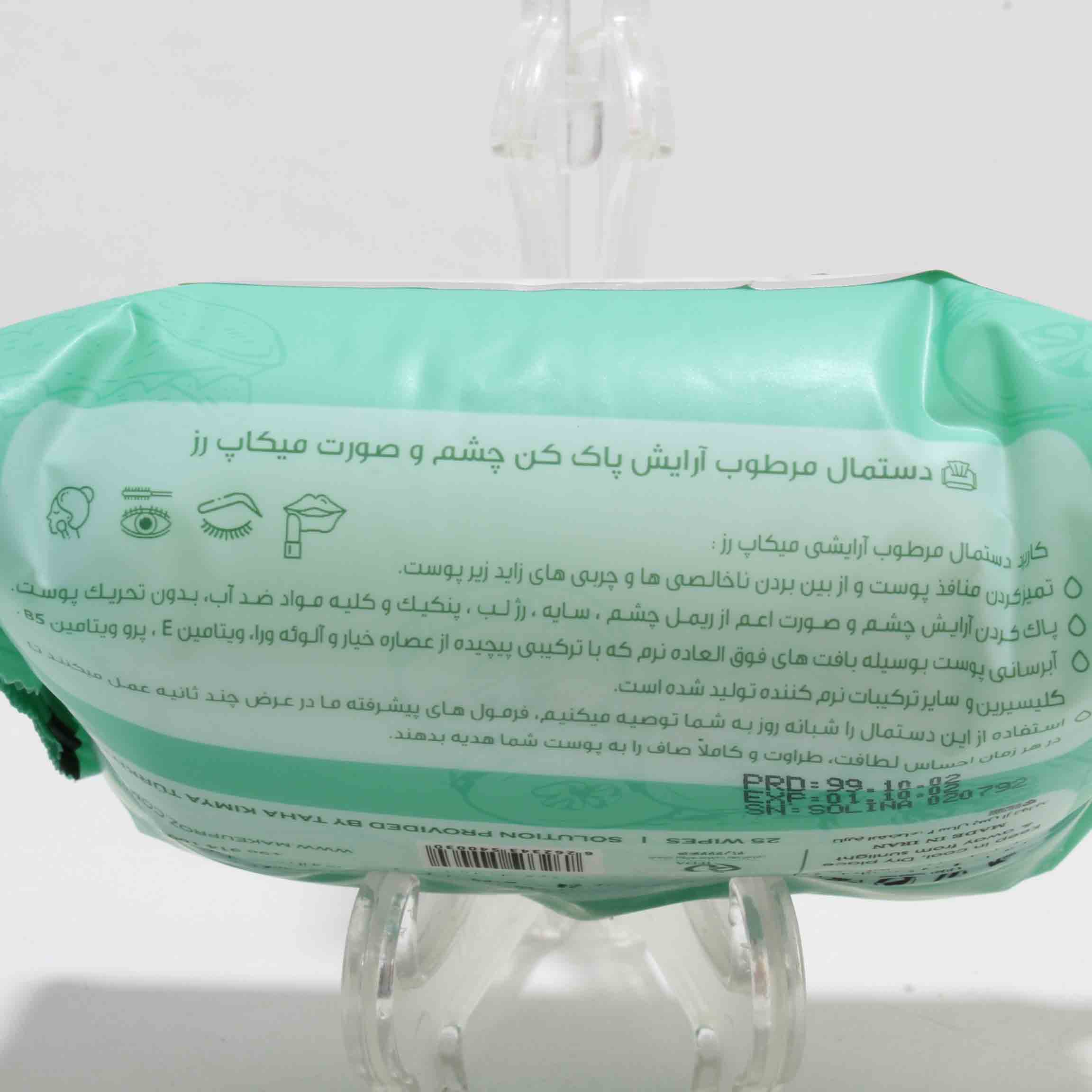 دستمال مرطوب آرايش پاک کن چشم و صورت با عصاره خيار و آلوئه ورا ميکاپ رز 25 عددي