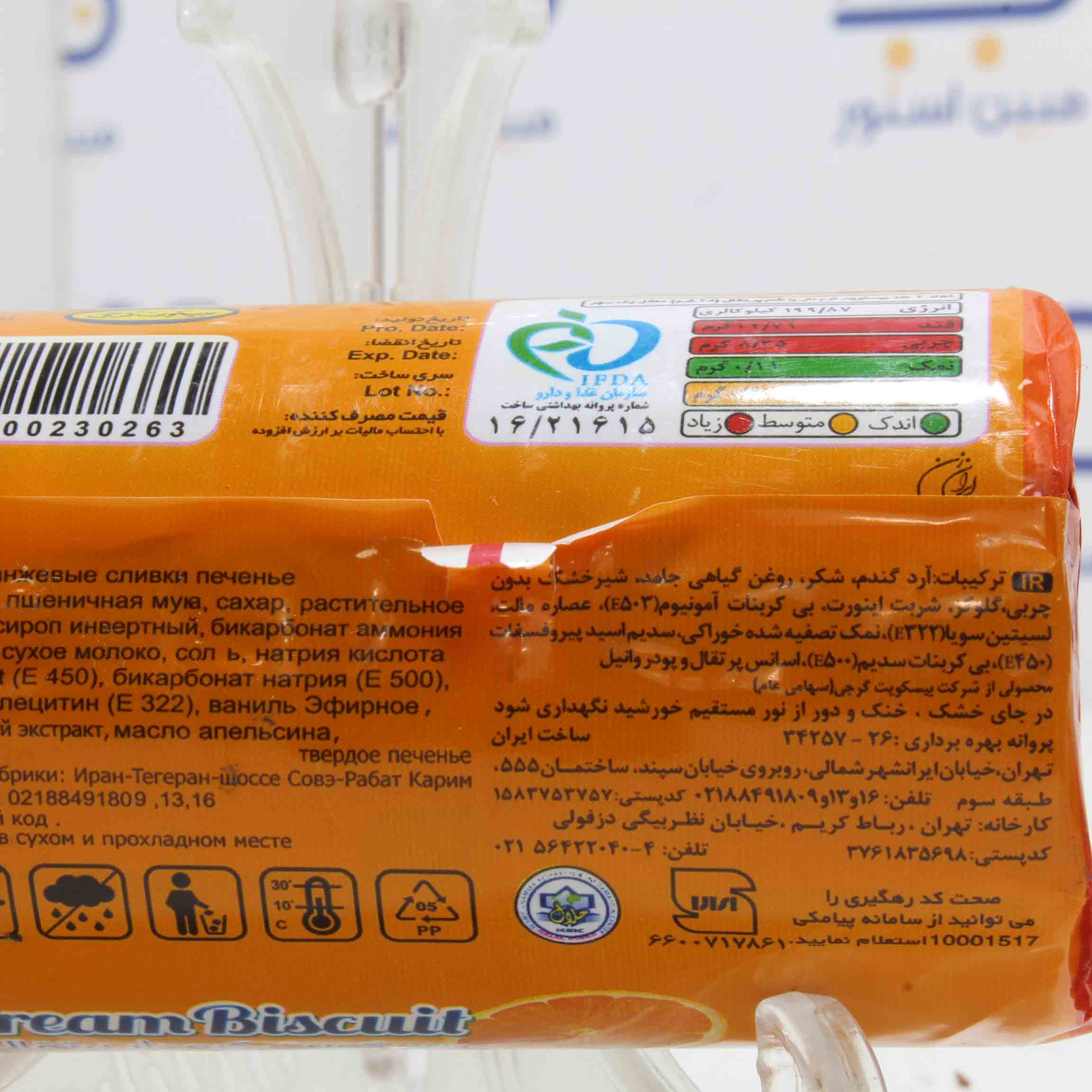 قیمت خرید و مشخصات بيسکويت کرمدار پرتقالي گرجي|بيسکويت کرمدار پرتقالي گرجي 140 گرمي