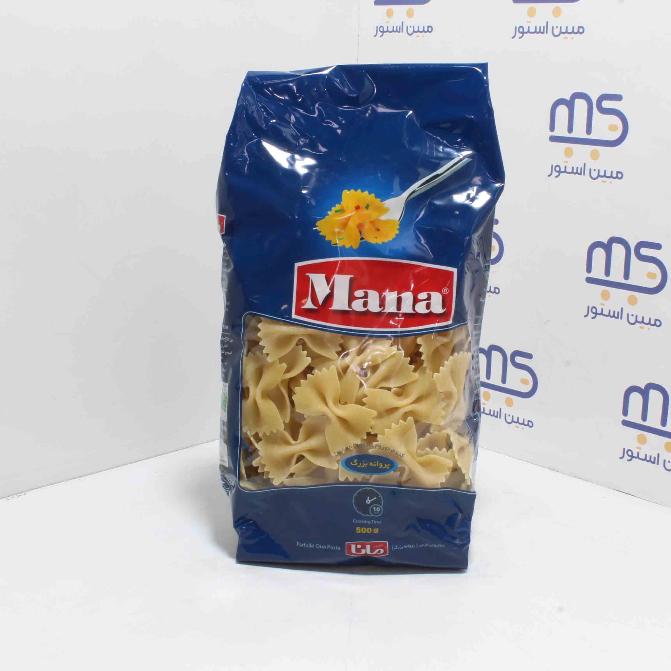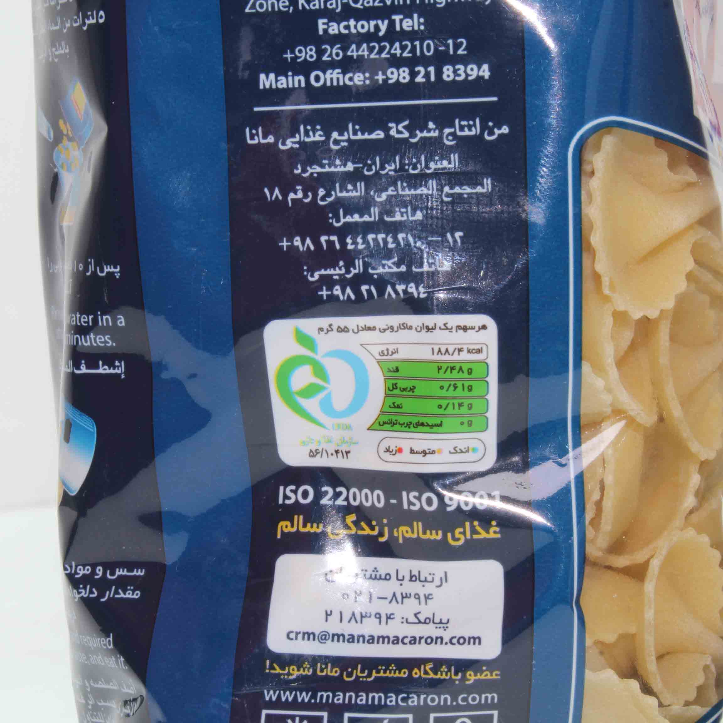قیمت خرید و مشخصات ماکارونی فرمی پروانه بزرگ مانا |ماکارونی فرمی پروانه بزرگ مانا 500 گرمی