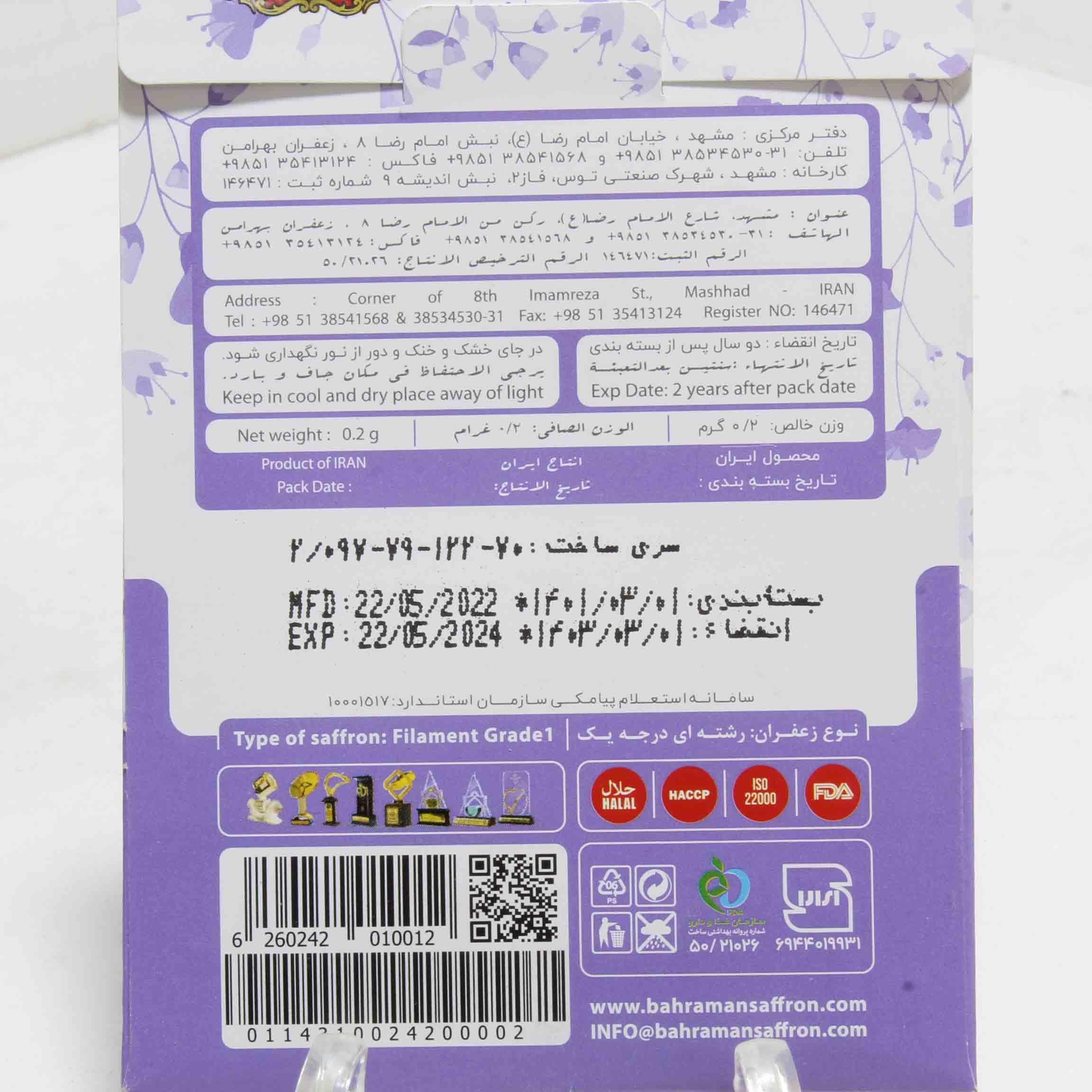 خرید زعفران رشته ای درجه یک بهرامن 0.2 گرمی