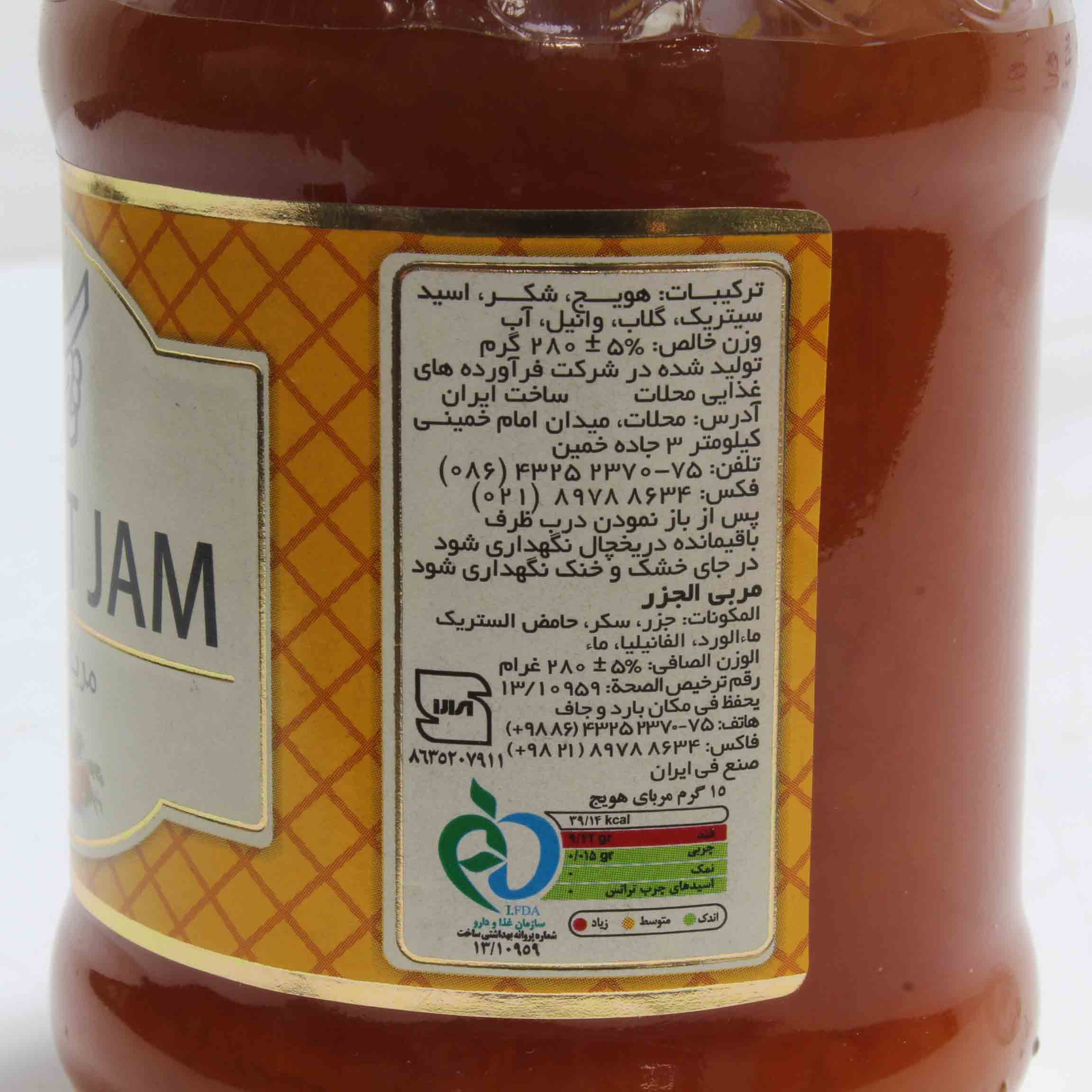 لبنیات، صبحانه و دسر عسل و مربا مربای هویج تک 280 گرمی