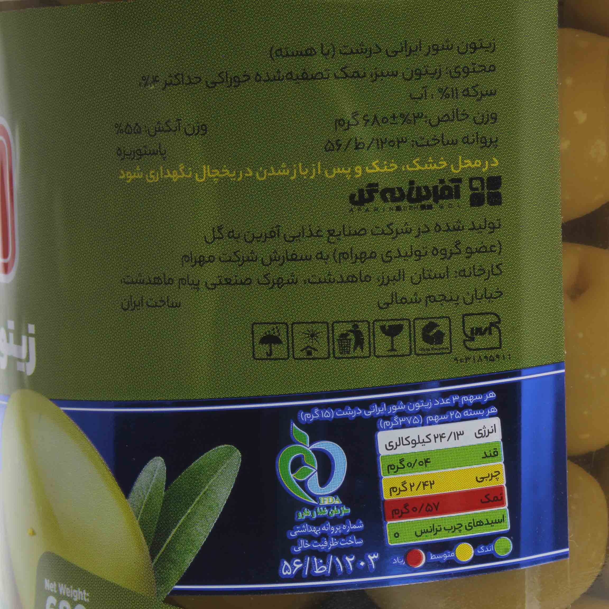 قیمت زیتون شور ایرانی درشت مهرام 680 گرمی