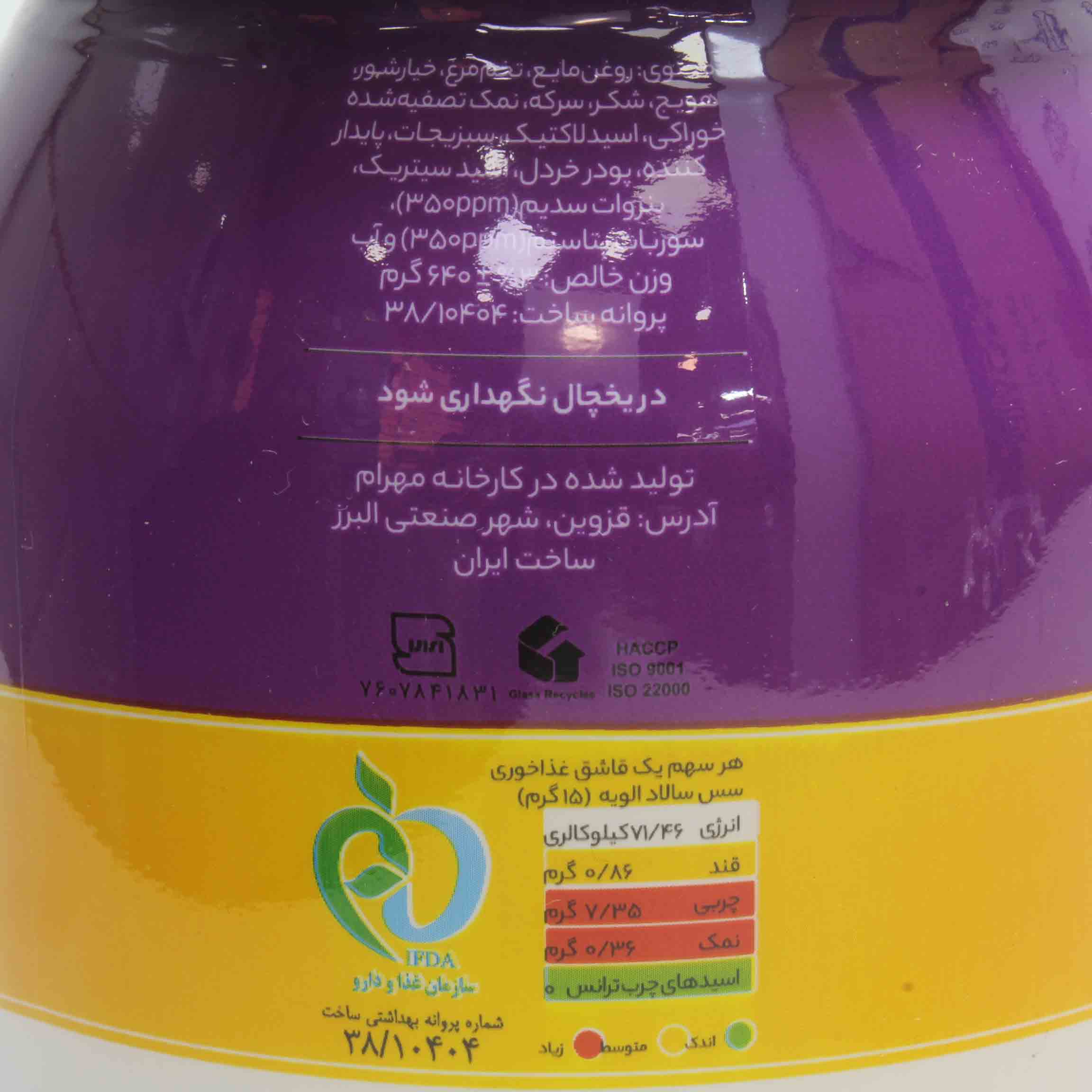 قیمت خرید و مشخصات سس سالاد الويه مهرام |سس سالاد الويه مهرام 640 گرمي