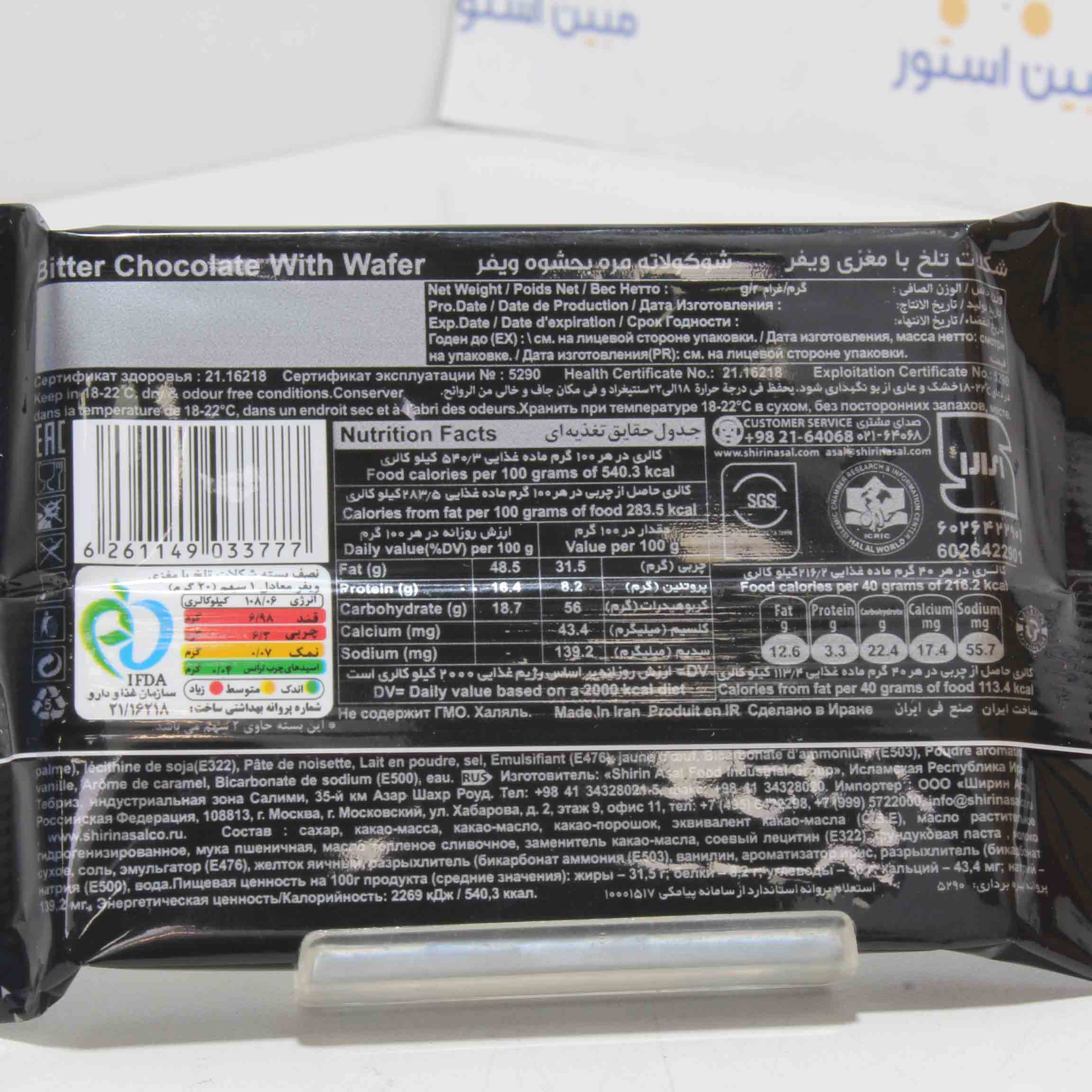 شکلات تلخ با مغزی ویفر هیس 40 گرمی