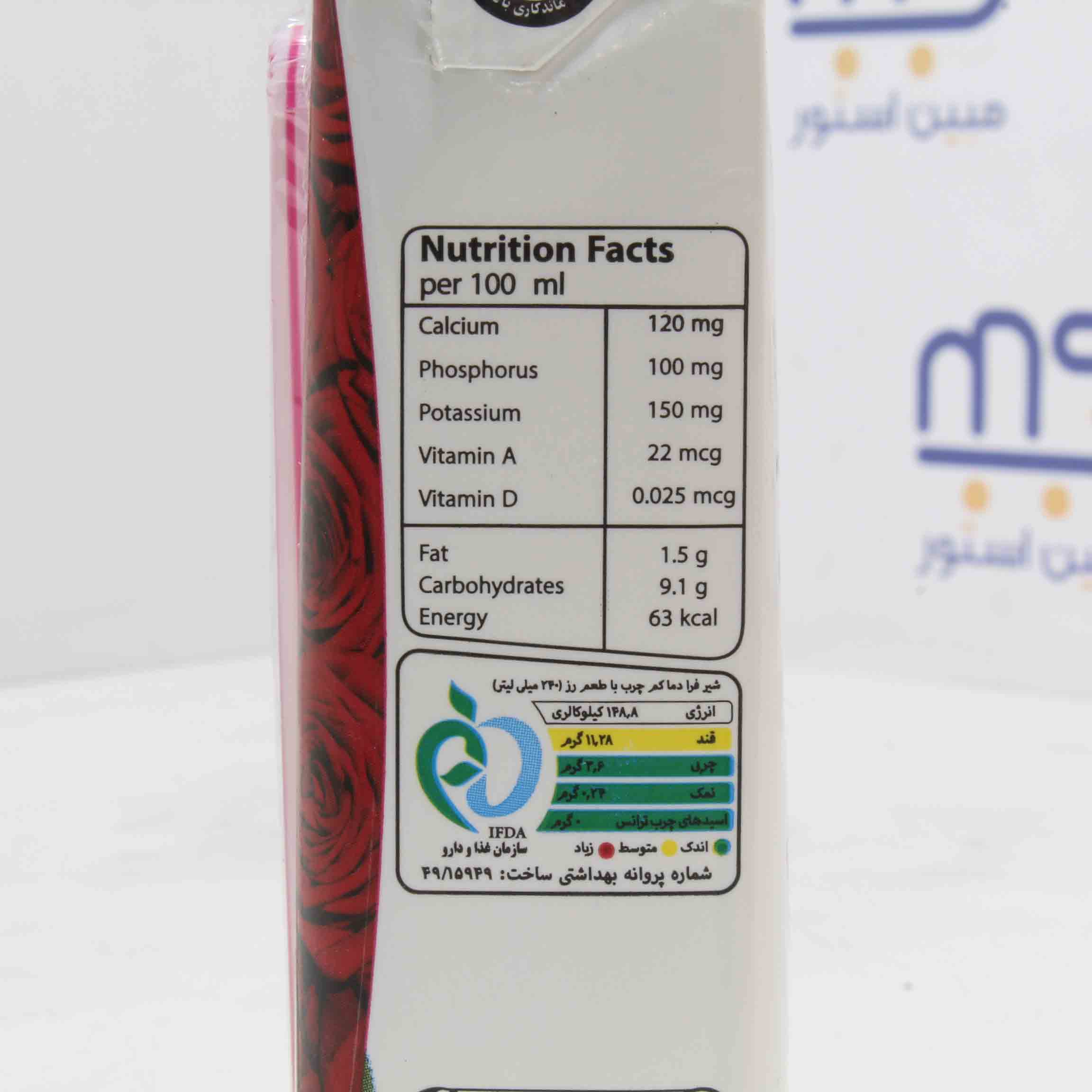 قیمت خرید و مشخصات شیر با طعم رز کاله |شیر با طعم رز کاله 200 میلی لیتری