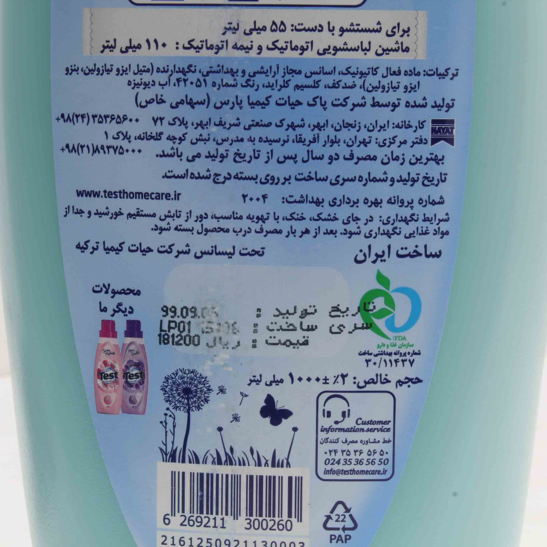 قیمت خرید و مشخصات مایع نرم کننده لباس آبی تست|مایع نرم کننده لباس آبی تست 1 لیتری