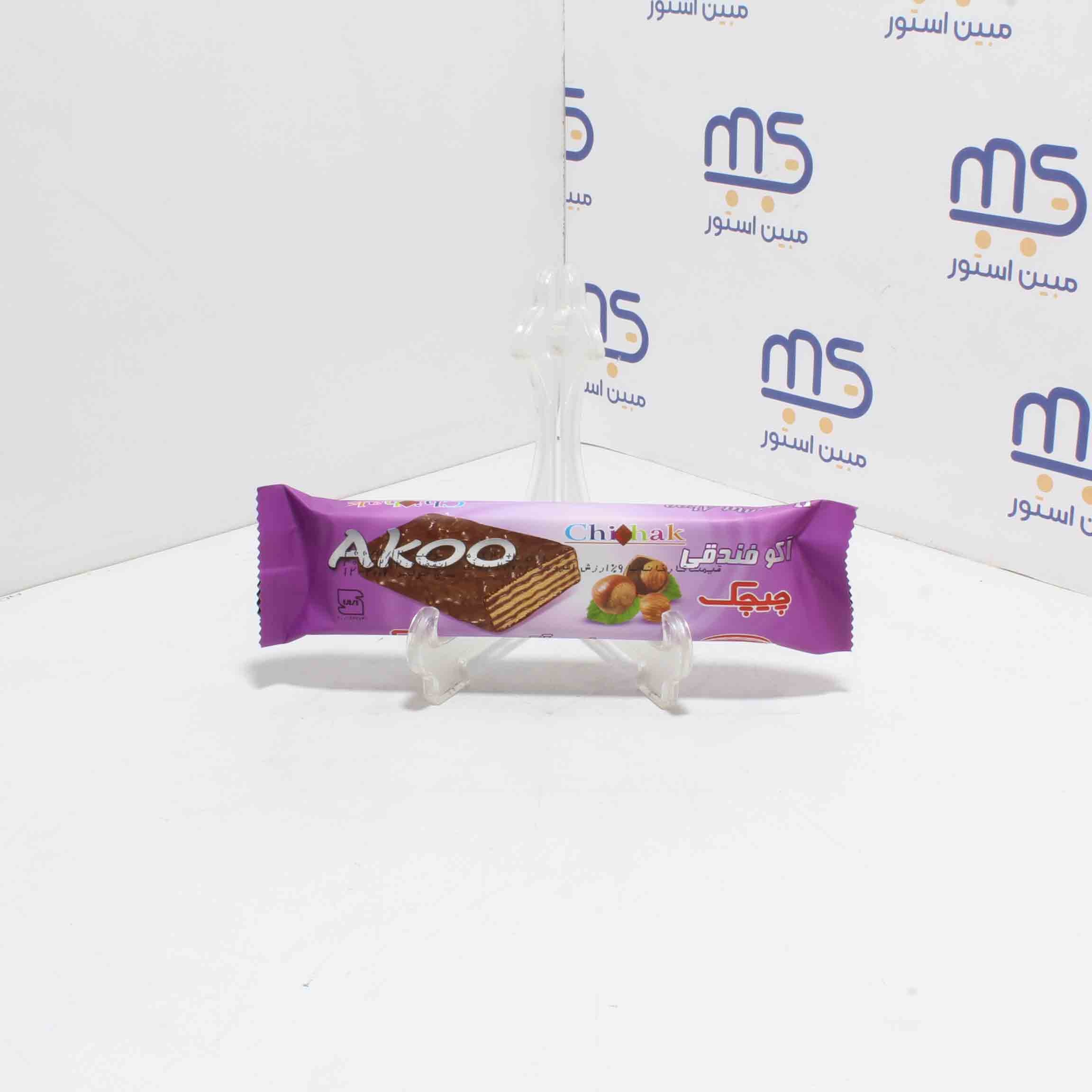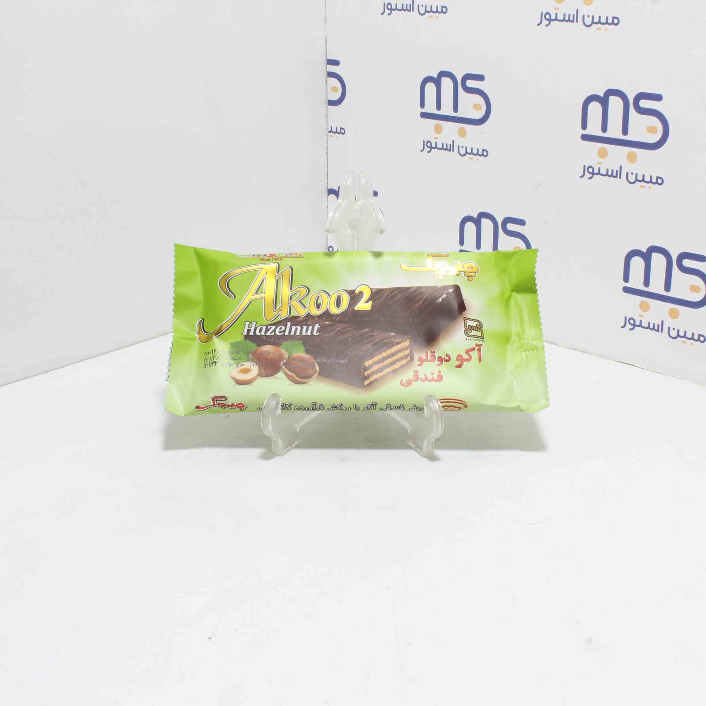 ویفر دوقلو فندقی آکو با روکش فرآورده کاکائویی چیچک 55 گرمی