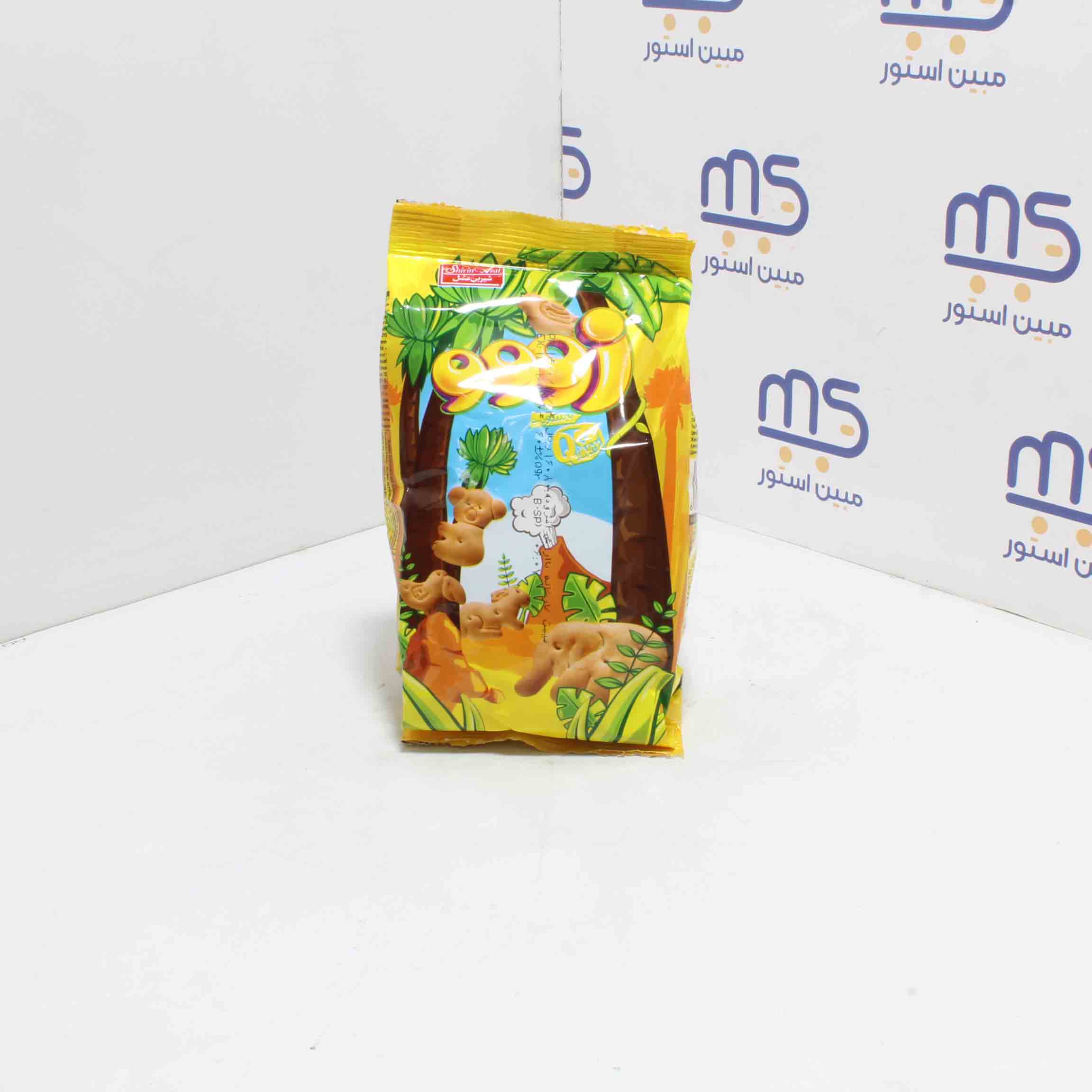 بیسکویت مغزدار با مغزی ژله با طعم موز با روکش کاکائویی شیرین عسل 25 گرمی