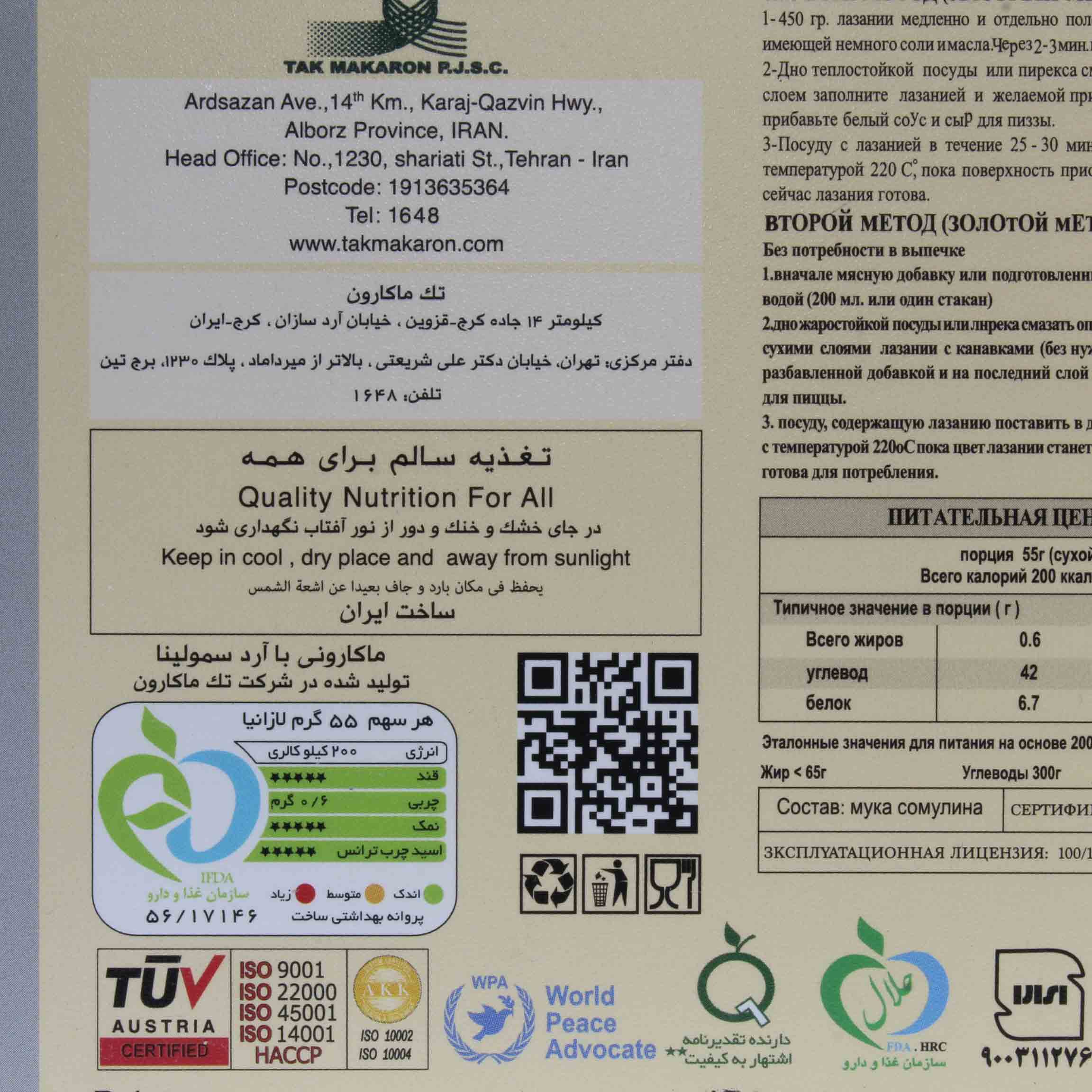 قیمت خرید و مشخصات لازانیا شیاردار سریع پخت حاوی 2 ادویه مخصوص تک ماکارون |لازانیا شیاردار سریع پخت حاوی 2 ادویه مخصوص تک ماکارون 450 گرمی