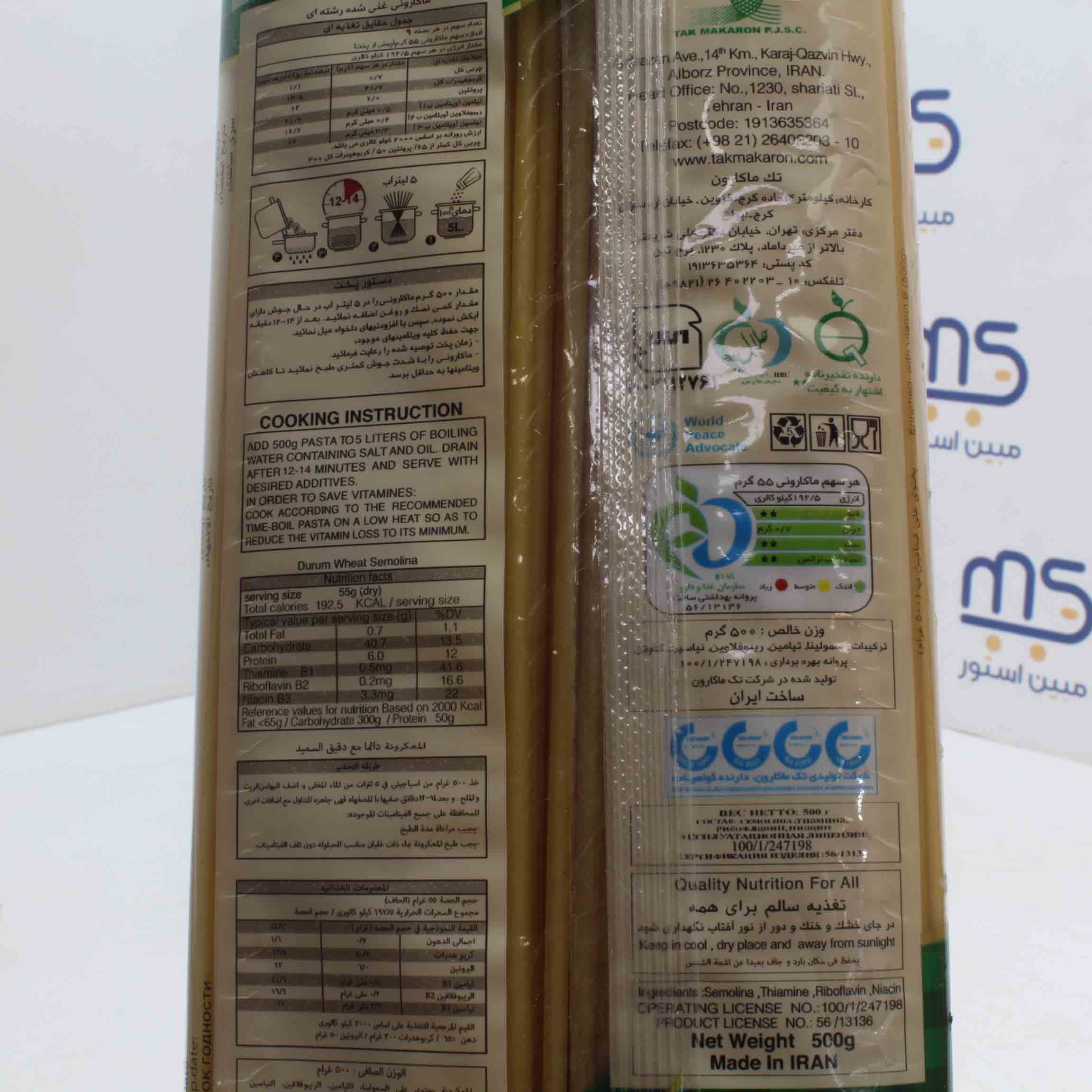قیمت خرید و مشخصات ماکارونی رشته ای قطر 2/8 تک ماکارون|ماکارونی رشته ای قطر 2/8 تک ماکارون 500 گرمی
