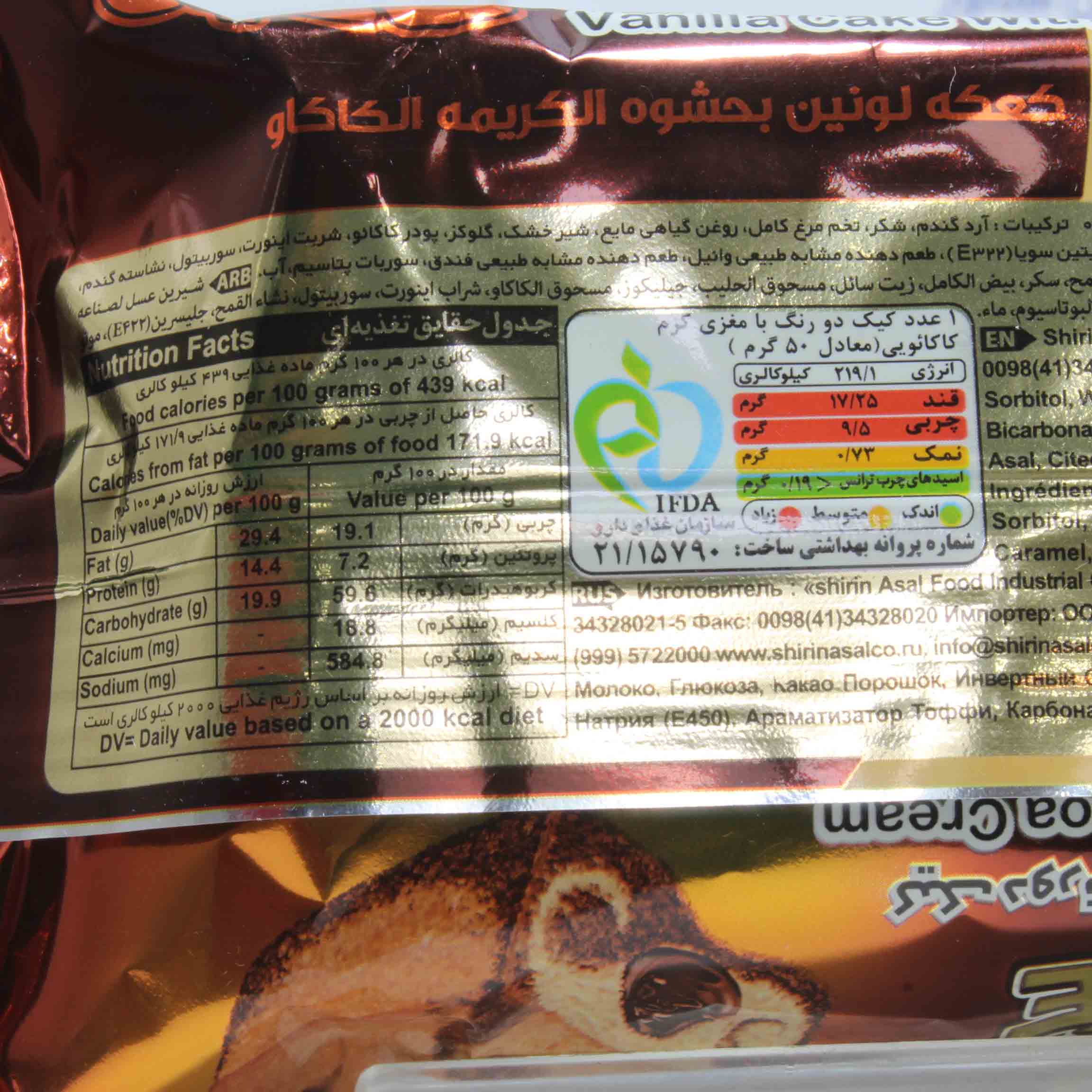 هایپر مارکت تنقلات و خشکبار کیک و کلوچه کیک دو رنگ با مغزی کرم کاکائویی های بای شیرین عسل 50 گرمی