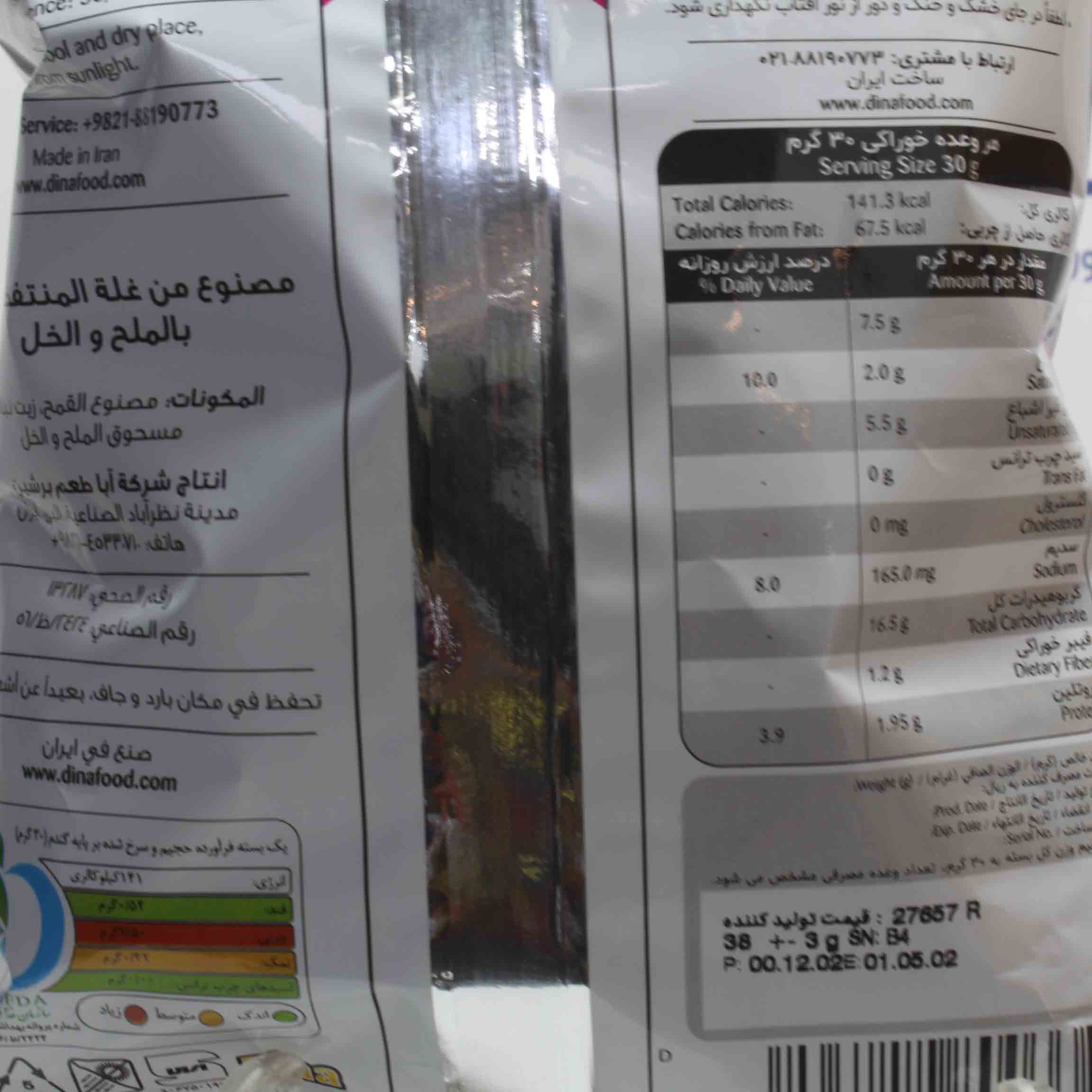فرآورده حجیم شده بر پایه گندم ـ روغن گیاهی مخصوص سرخ کردن ـ پودر سرکه نمکی.