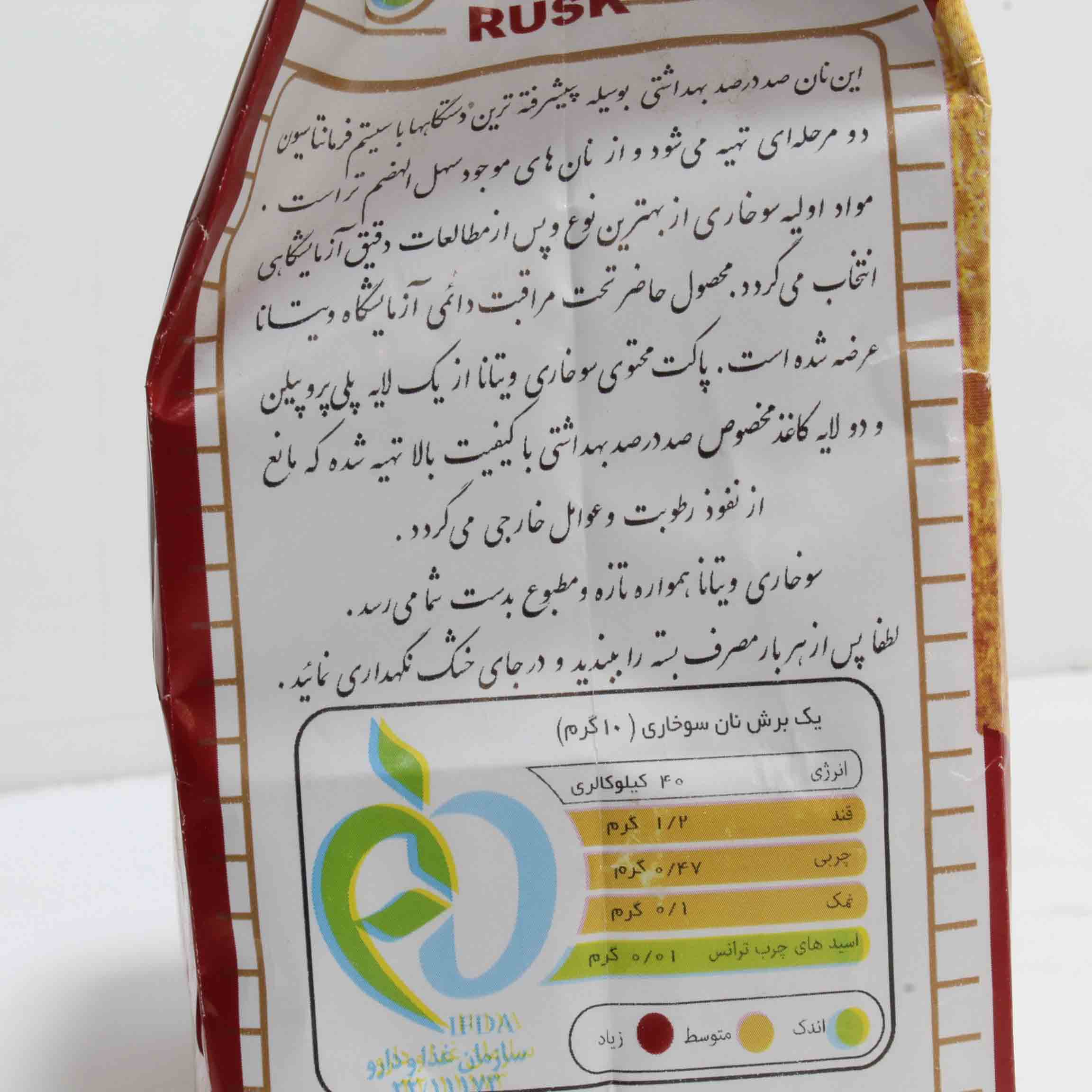 پاکت محتوی سوخاری ویتانا از یک لایه پلی پروپیلن و دو لایه کاغذ مخصوص صد در صد بهداشتی با کیفیت بالا تهیه شده که مانع از نفوذ رطوبت و عوامل خارجی می گردد.