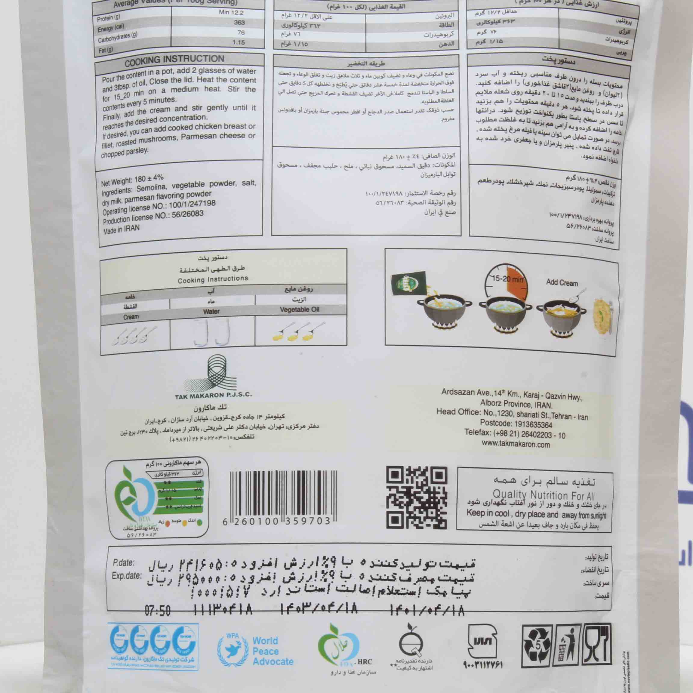 قیمت خرید و مشخصات پاستا نیمه آماده پنه ریگاته با سس آلفردو تک ماکارون|پاستا نیمه آماده پنه ریگاته با سس آلفردو تک ماکارون 180 گرمی